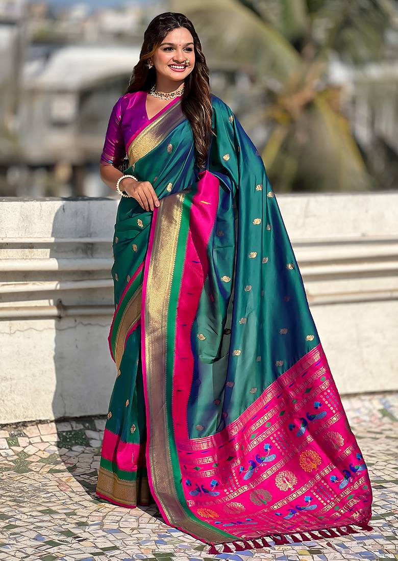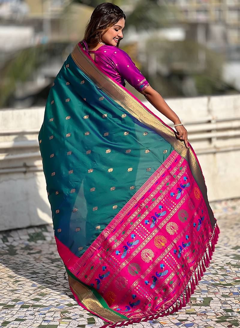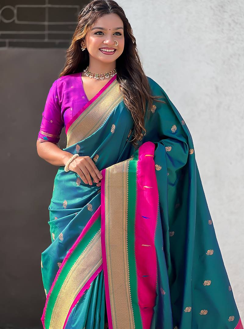 | Product Name | Teal Green Woven Self Design Pure Silk Paithani Saree With Blouse | |
