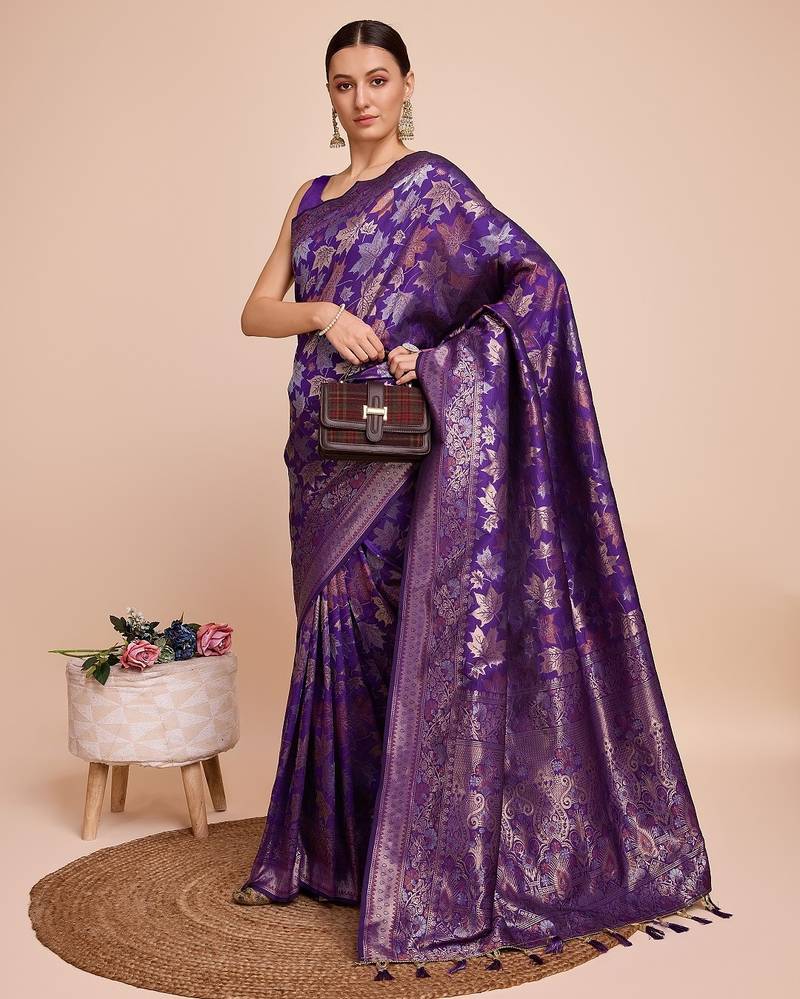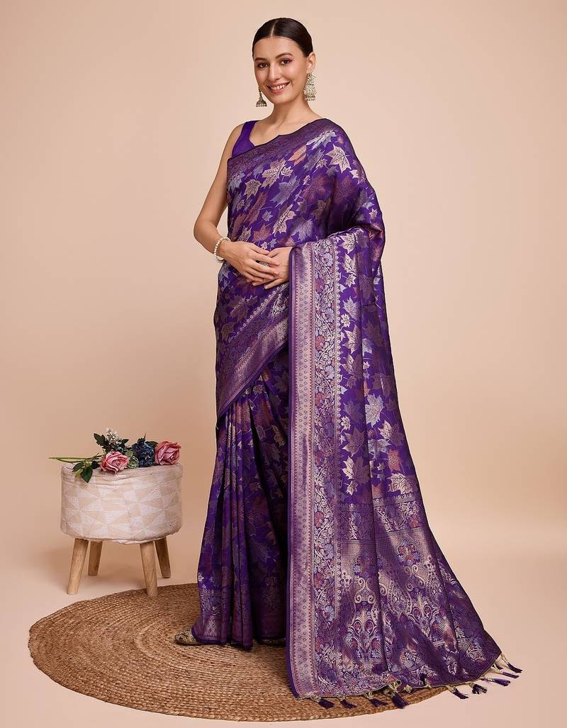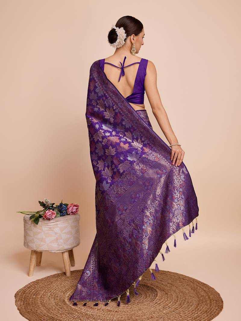 Product Name Violet Woven Embellished Pure Silk Banarasi Saree With Blouse