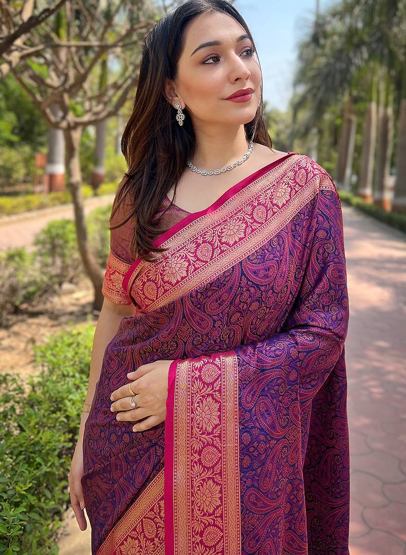 | Product Name | Violet Woven Self Design Pashmina Silk Saree With Blouse | |