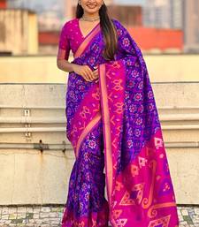 Violet woven self design silk blend patola saree with blouse