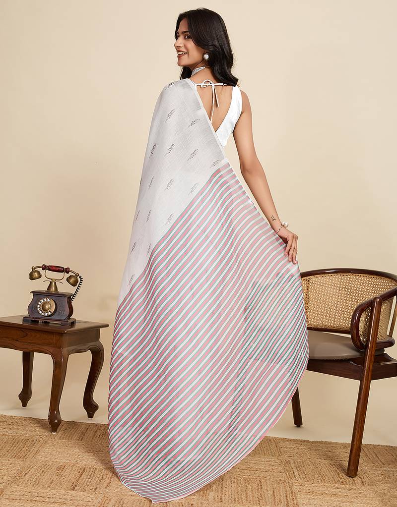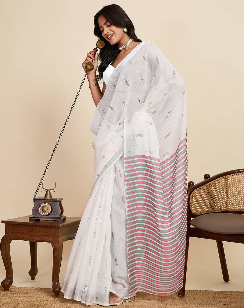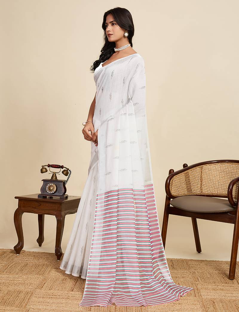| Product Name | White Printed Linan Kalamkari Saree With Blouse | |