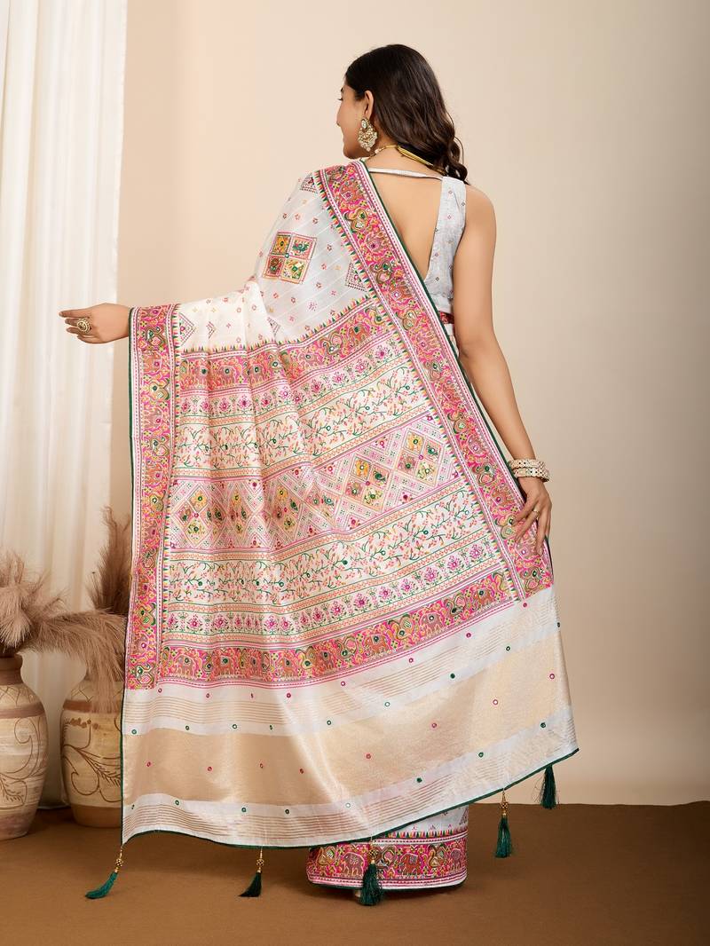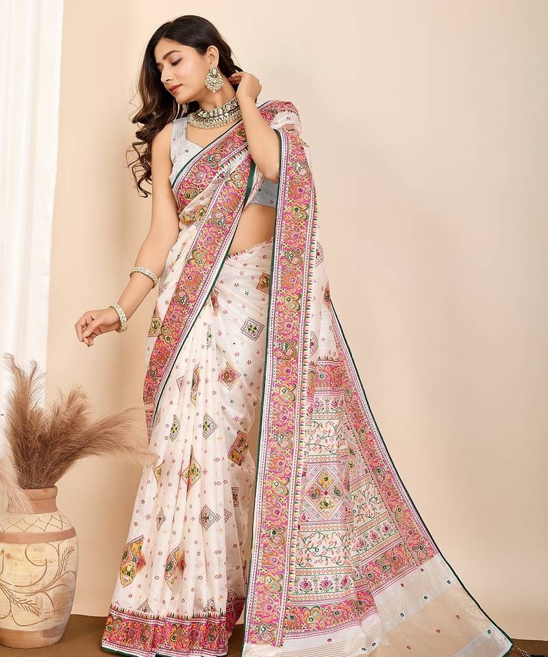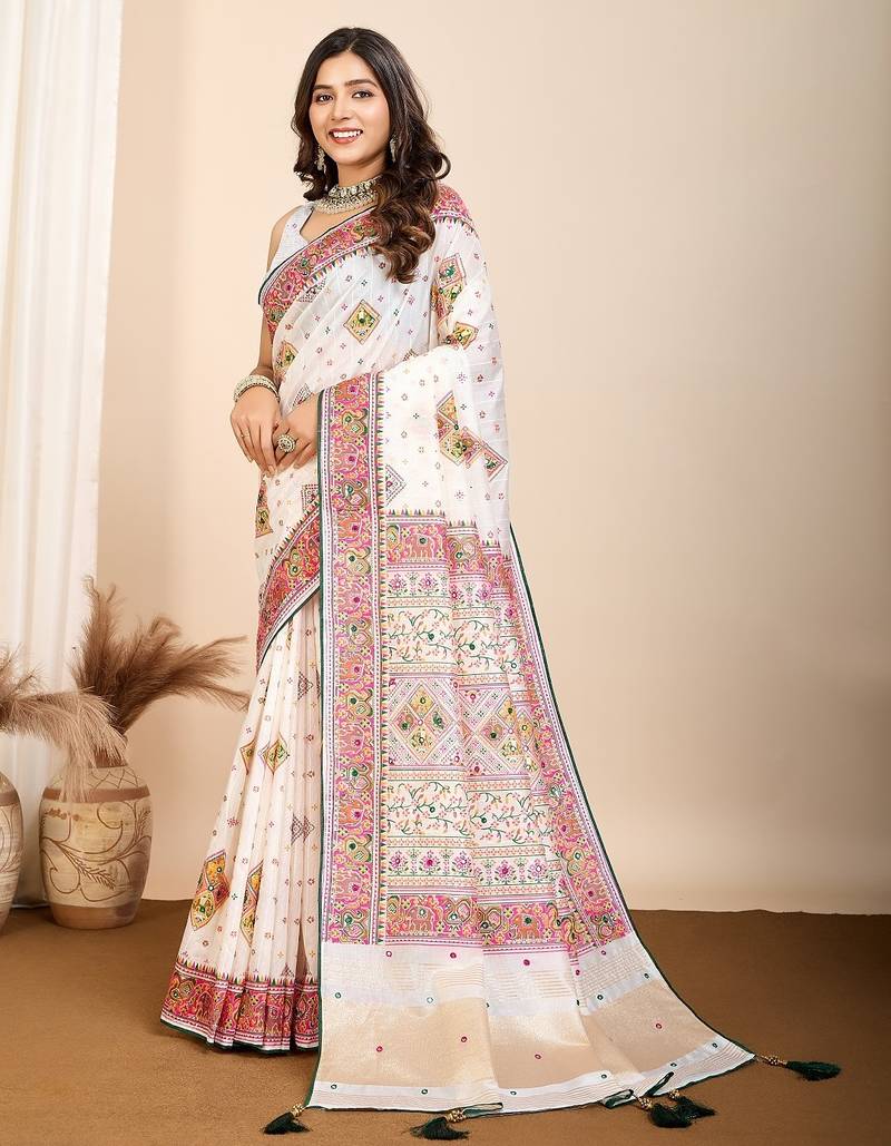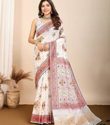 | • | Saree | : | Color- White / Fabric- Cotton Silk |