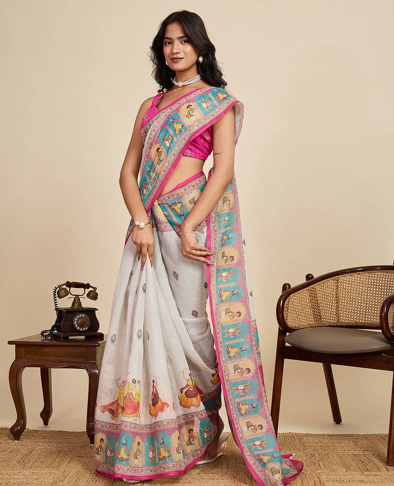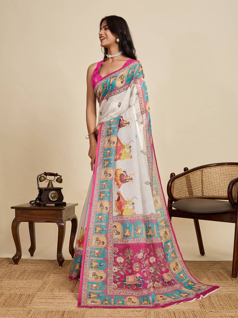 | Product Name | White3 Printed Linan Kalamkari Saree With Blouse | |