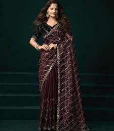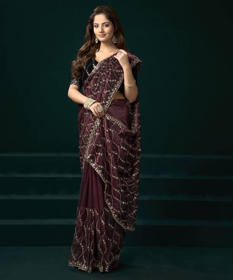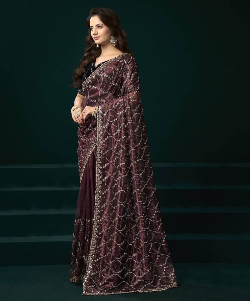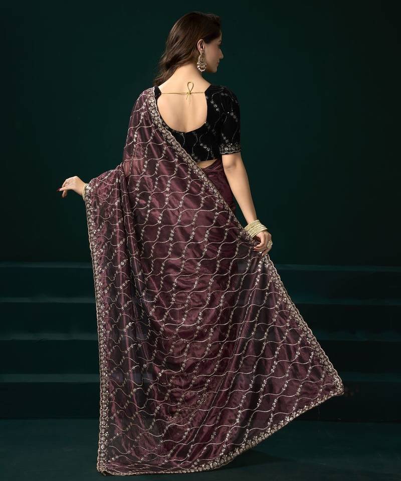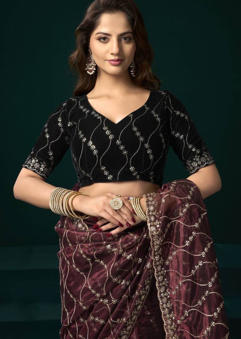 | Product Name | Wine Embroidered Embellished Bollywood Net Saree With Blouse | |