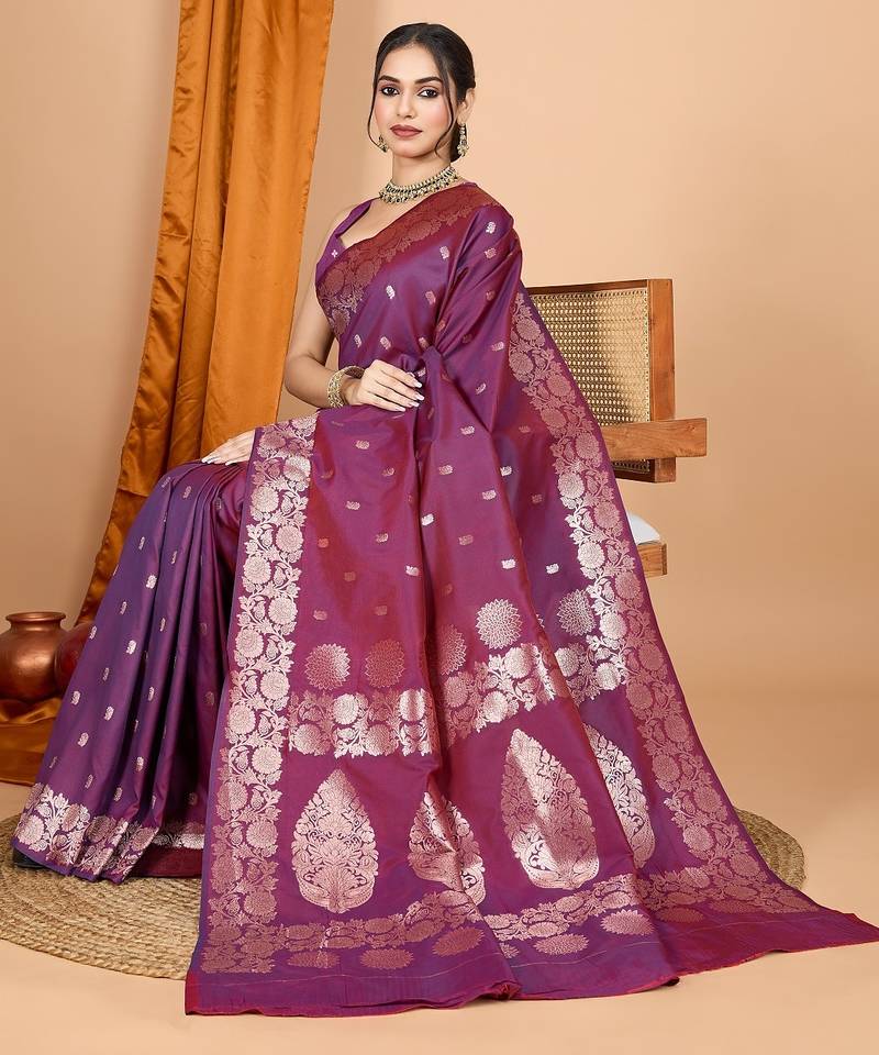 | Product Name | Wine Woven Self Design Embellished Pure Silk Banarasi Saree With Blouse | |