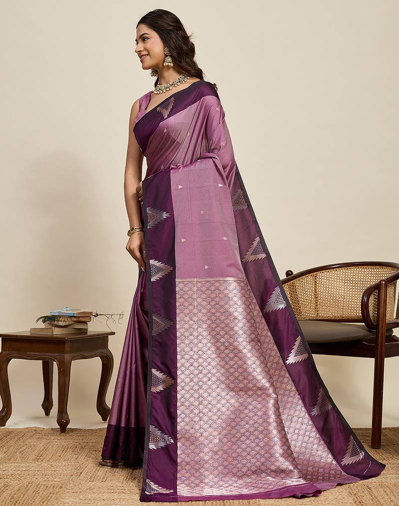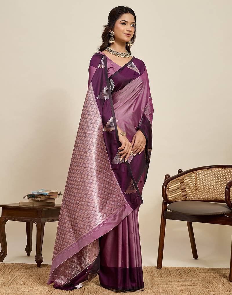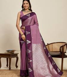 Wine zari woven soft silk banarasi saree with blouse