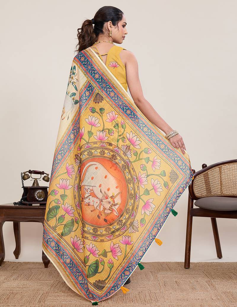 | Product Name | Yellow Printed Linan Bollywood Saree With Blouse | |