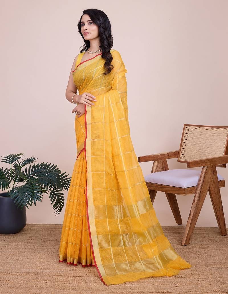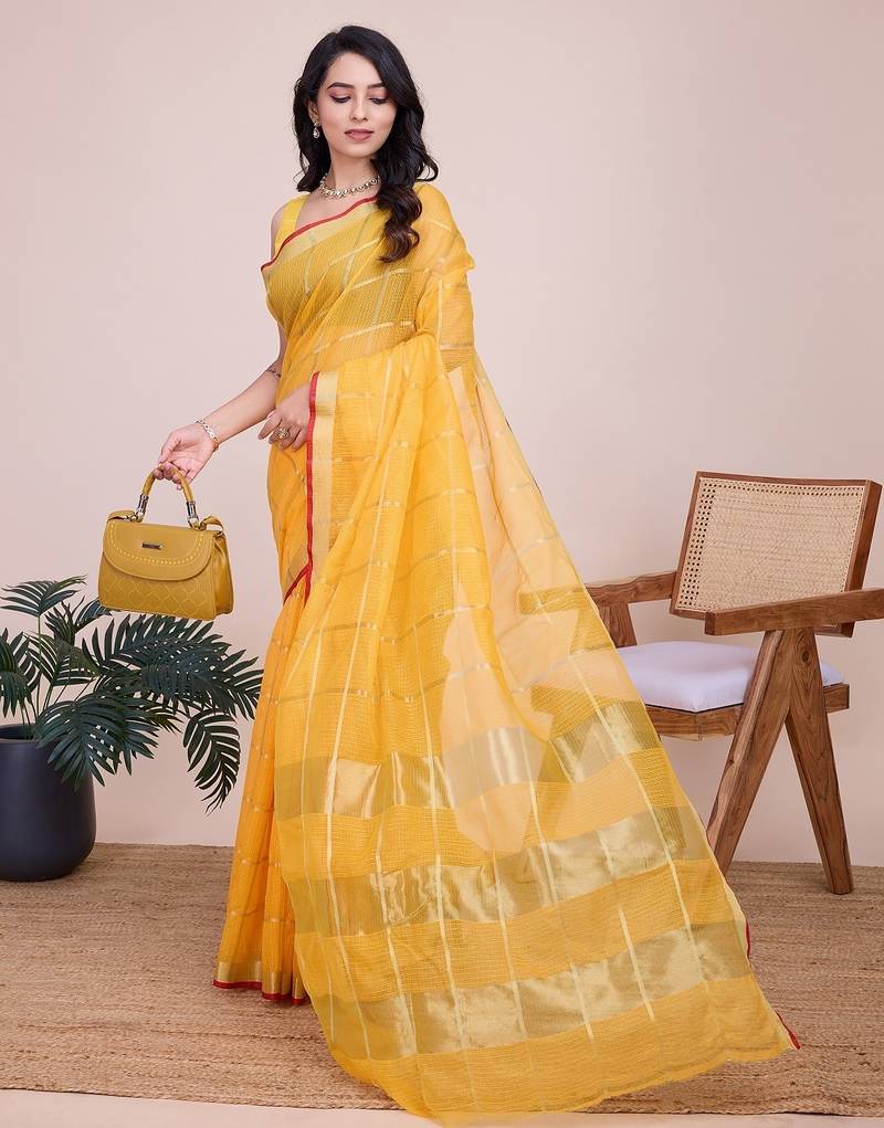 | Product Name | Yellow Woven Checkered Striped Cotton Silk Kota Doria Saree With Blouse | |