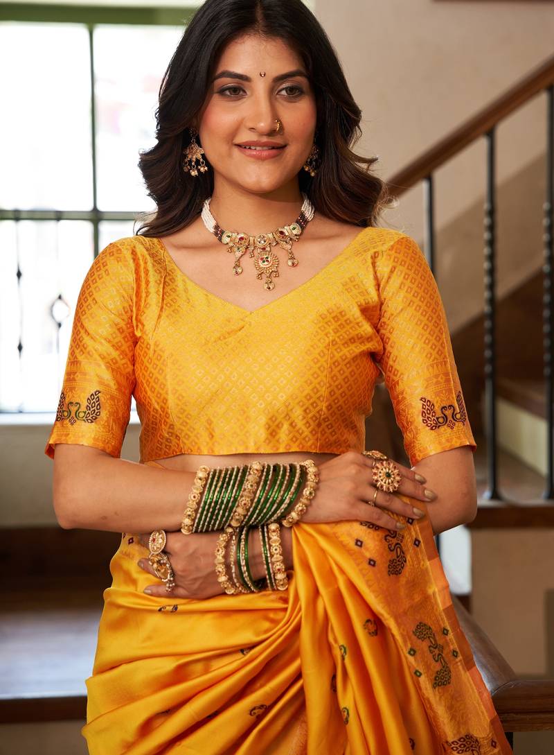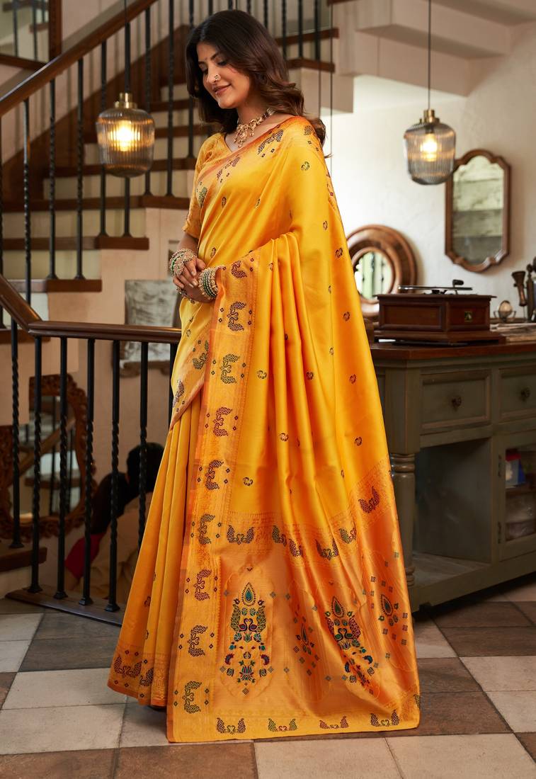 Yellow woven paithani silk saree with blouse