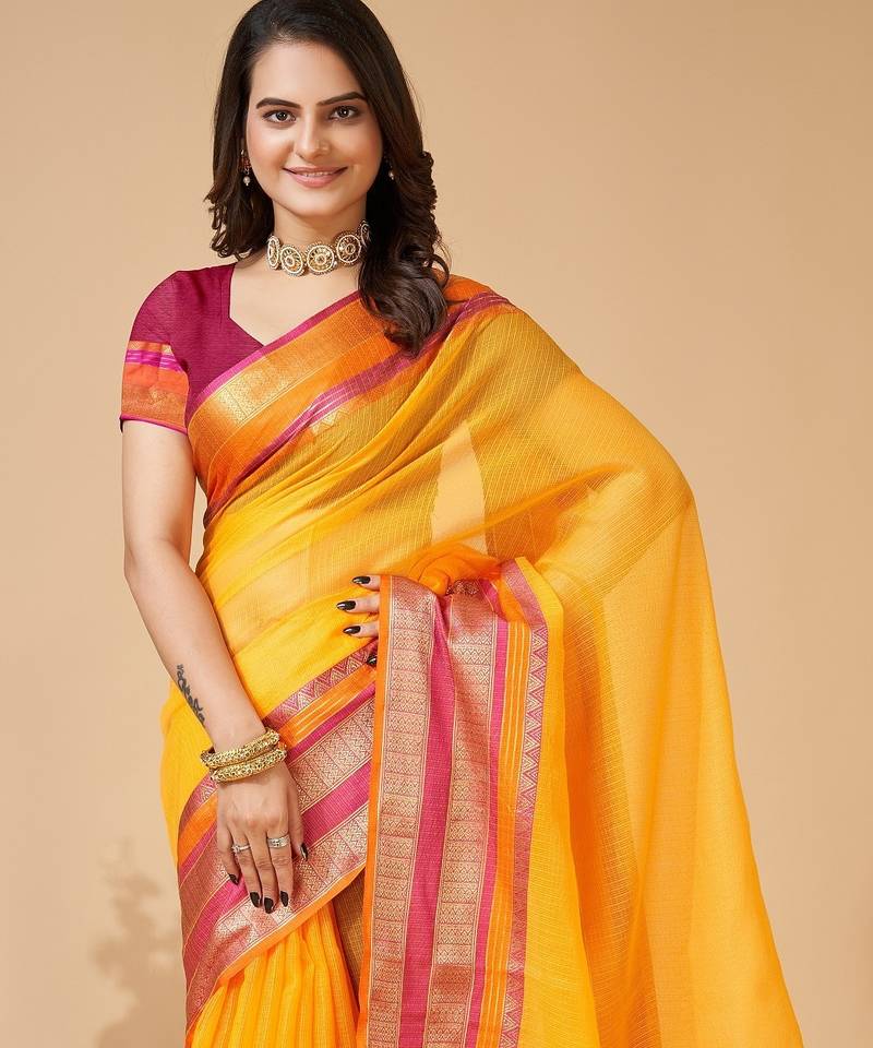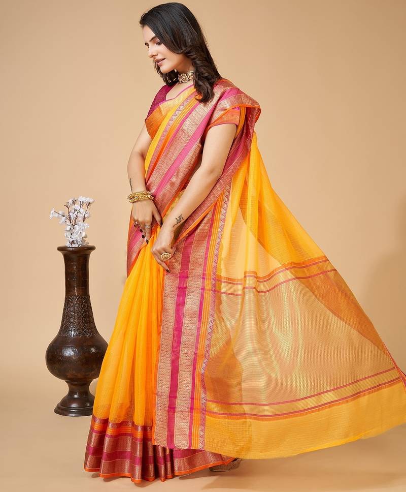 | Product Name | Yellow Woven Self Design Cotton Silk Kota Doria Saree With Blouse | |