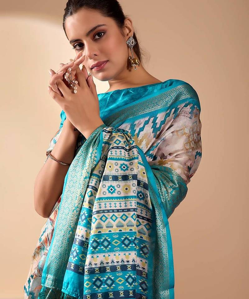 | Product Name | Beige Lichi Art Silk Saree With Digital Print & Rich Zari Woven Border | Designer Festival Wear With Blouse | |