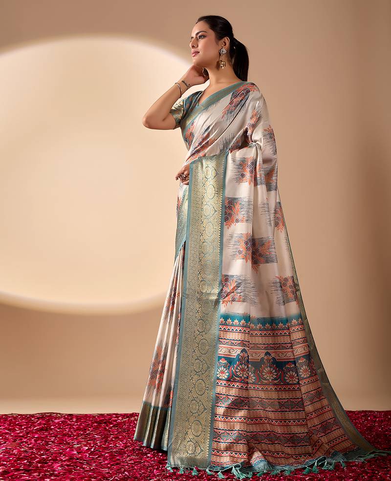 | Product Description | • Premium Soft Silk Blend Saree Featuring Rich Traditional Artistry And Intricate Digital Detailing