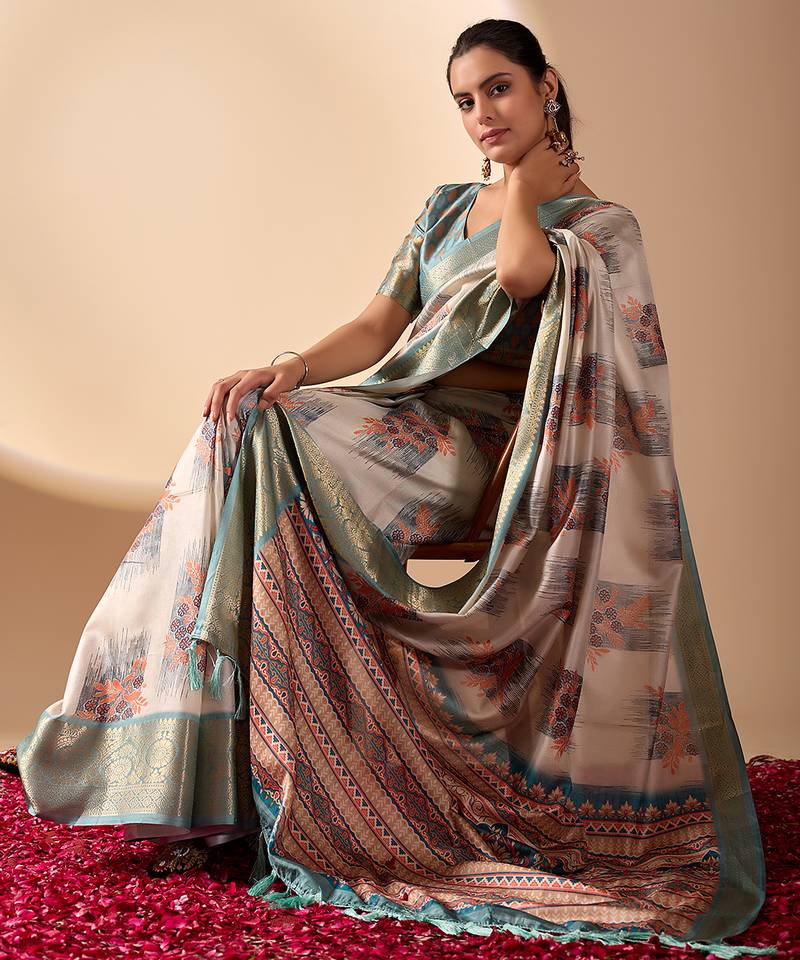 | Product Name | Beige Soft Lichi Art Silk Blend Saree With Traditional Motifs, Zari Woven Border & Designer Pallu | |