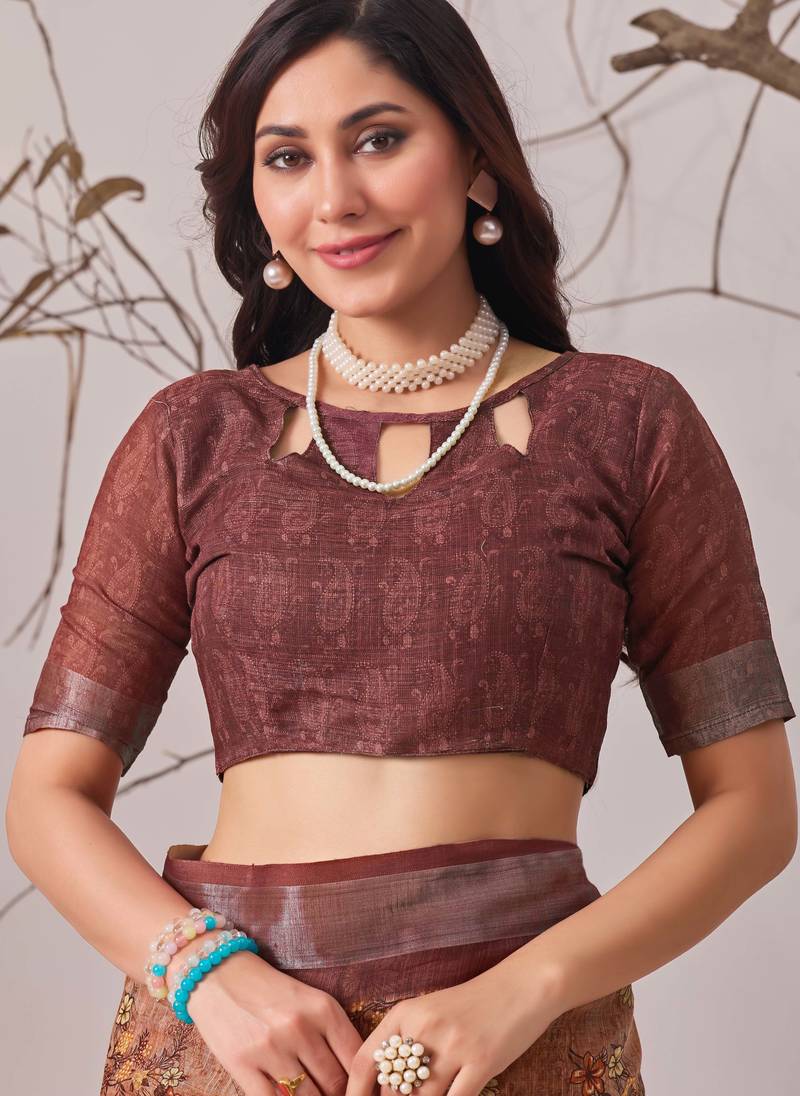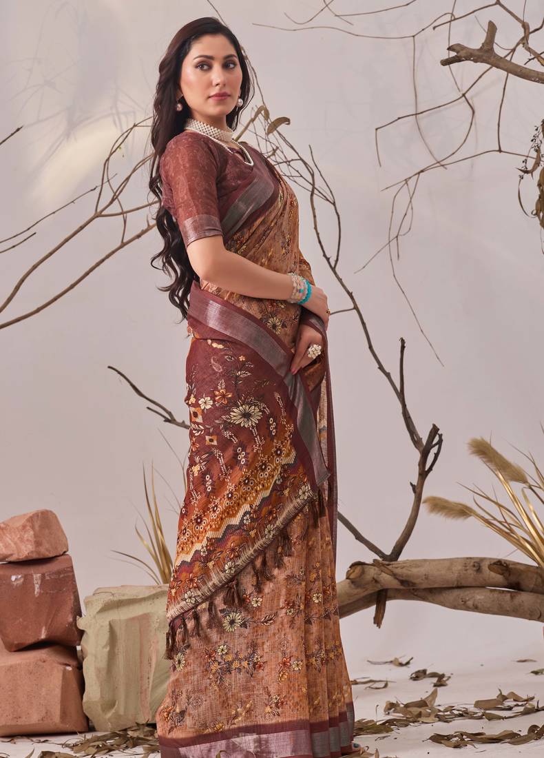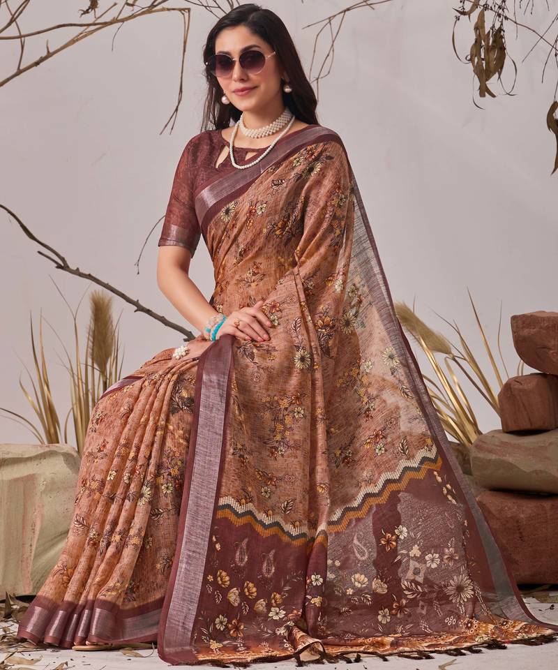 | Product Name | Bronze Elegant Digital Printed Linen Cotton Floral Saree With Designer Pallu – Party Wear Saree With Blouse | |