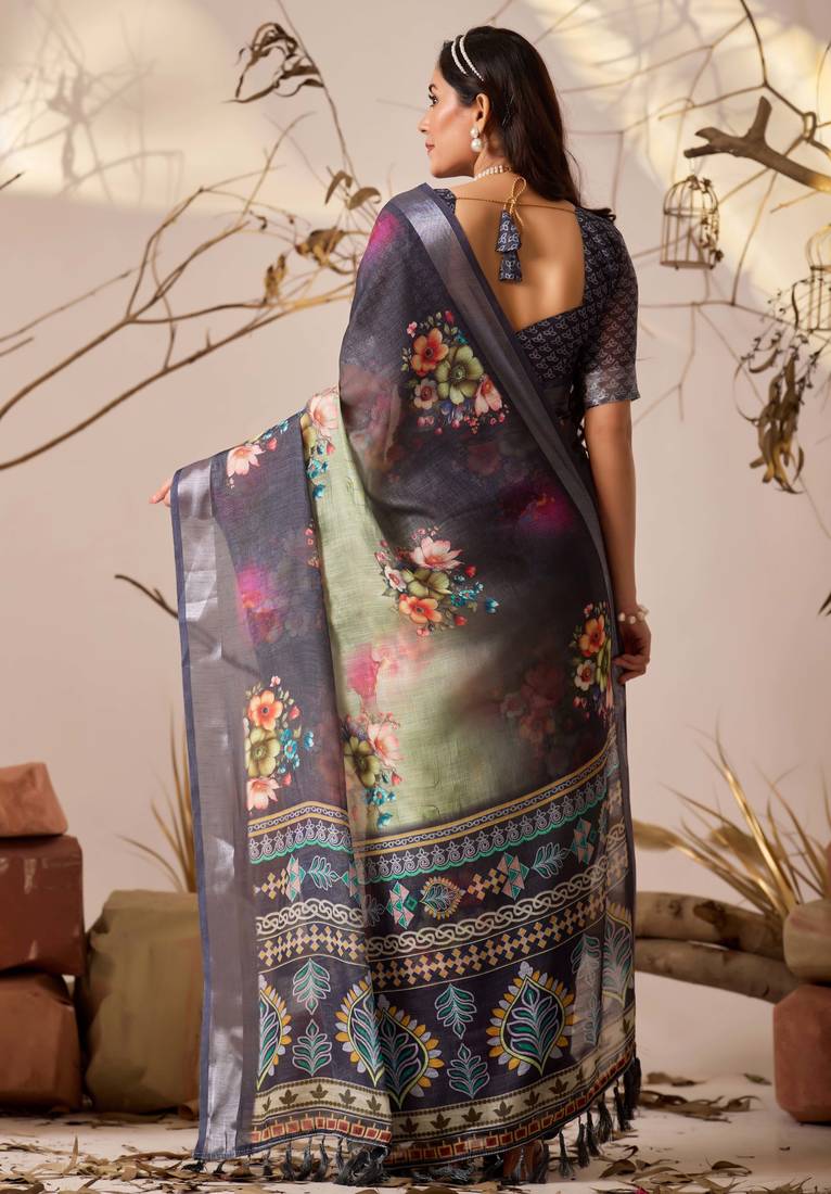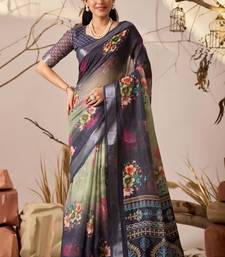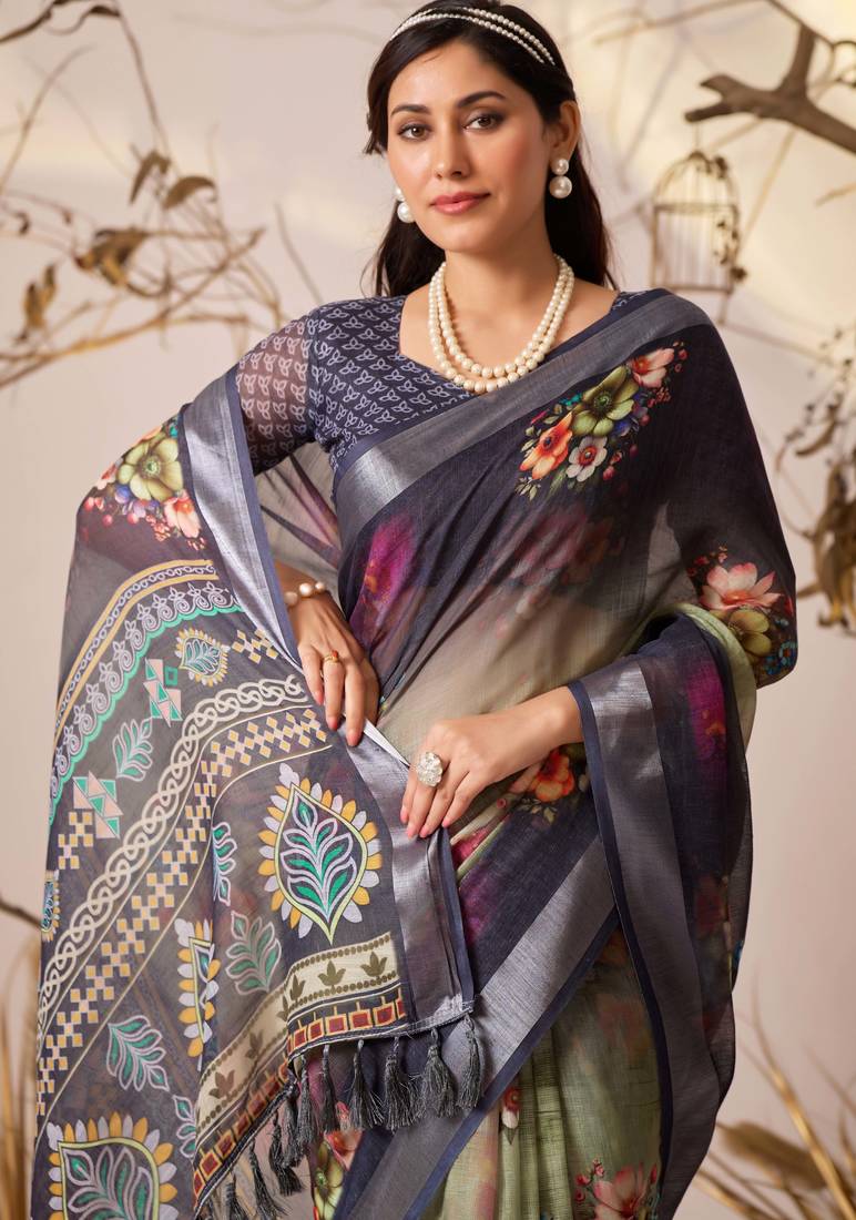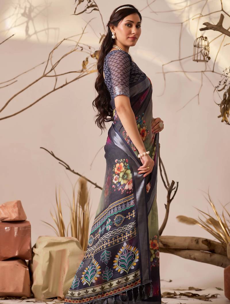 | Product Description | • Premium Linen Cotton Saree With Elegant Digital Floral Design And Rich Ethnic Detailing