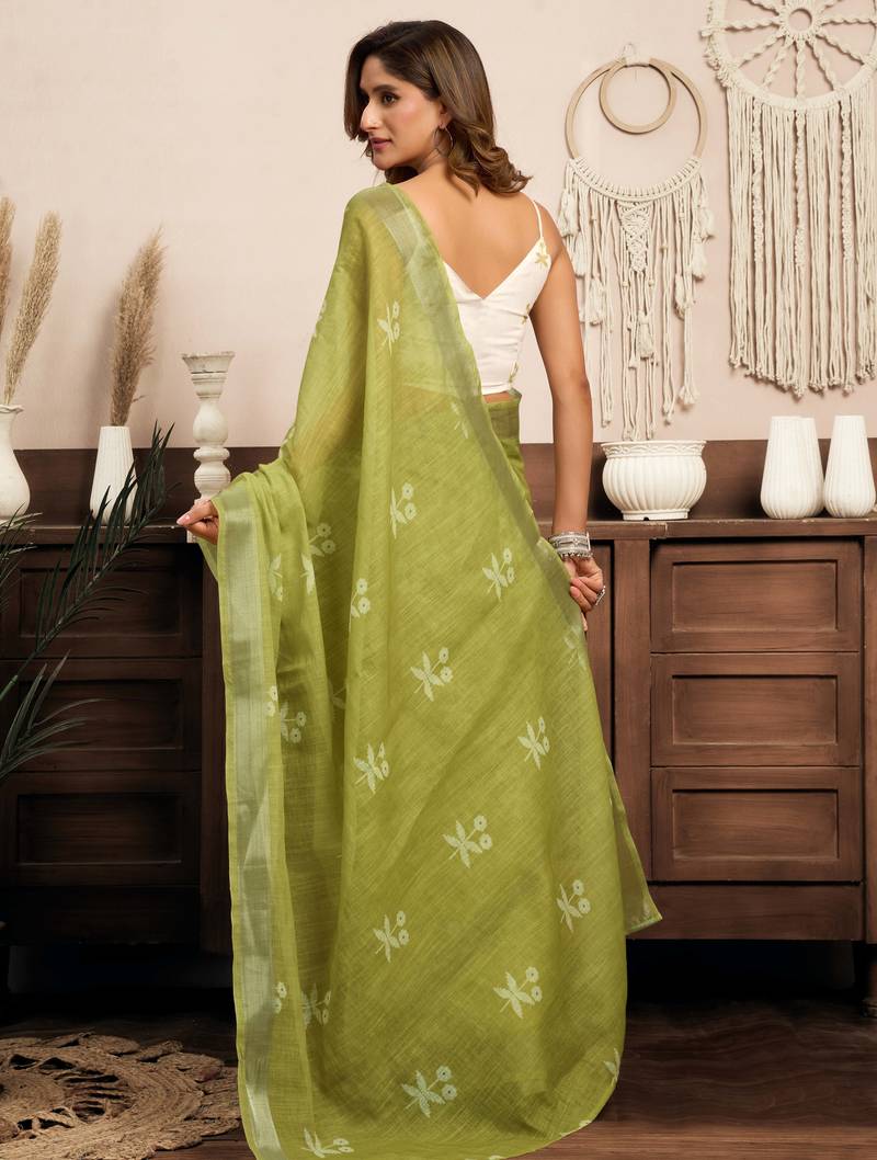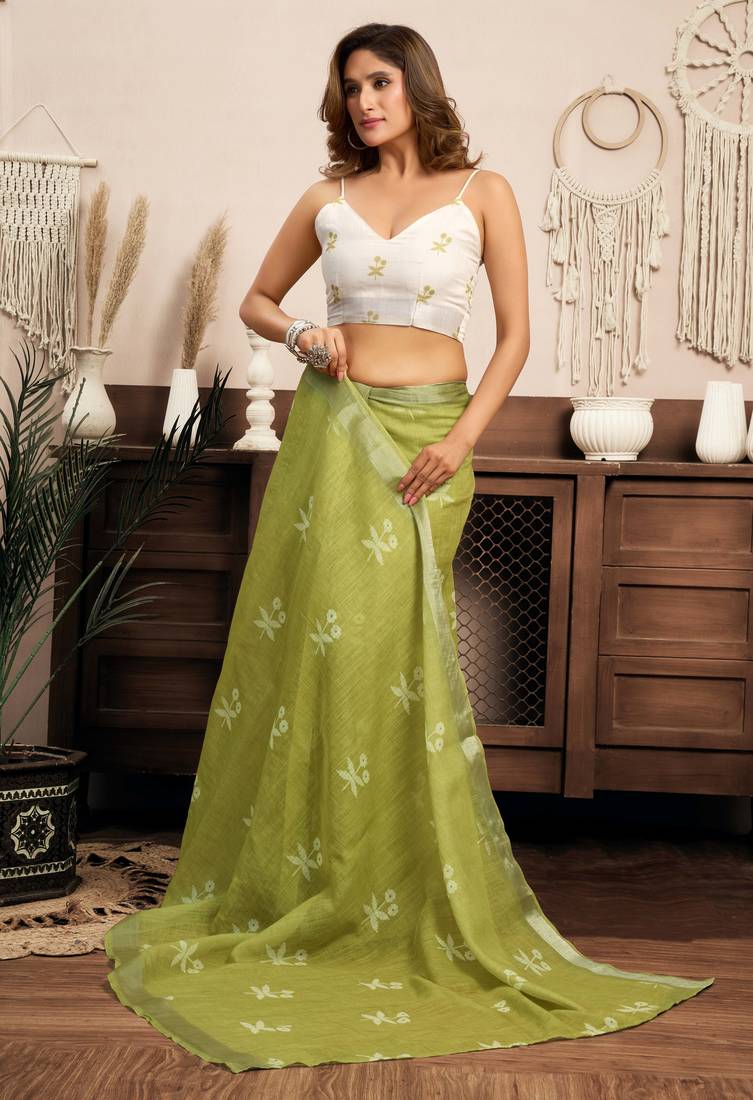 | Product Name | Light Green Floral Print Linen One Minute Saree With Unstitched Blouse Ready To Wear Design | |