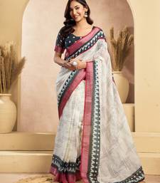 | • | Saree | : | Color- Off White / Fabric- Faux Linen |