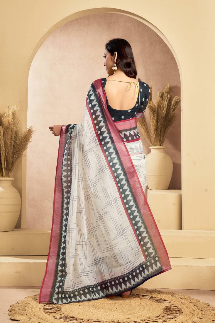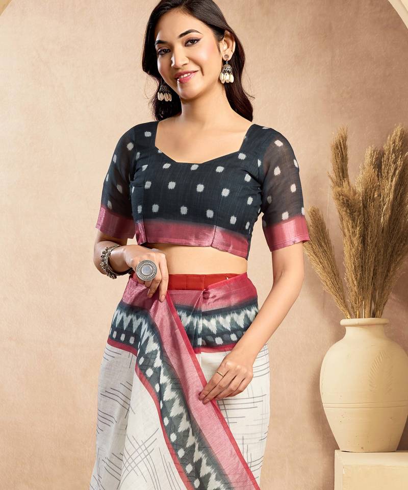 | Product Name | Off White Linen Printed Ready To Wear Saree With Zari Stripe Border | One Minute Saree With Blouse Piece & Pocket | |