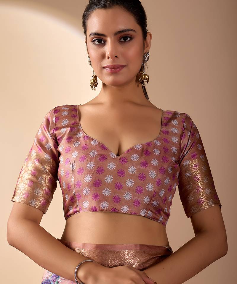 | Product Name | Peach Lichi Silk Digital Floral Print Saree With Rich Zari Pallu & Contrast Border – Designer Party Saree With Blouse | |