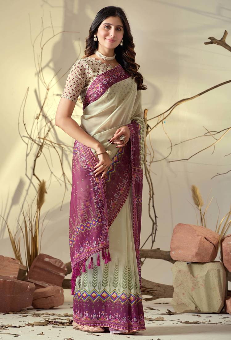 | Product Description | • Soft Georgette Saree With Artistic Digital Patterns Ideal For Party, Festive And Everyday Styling.