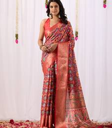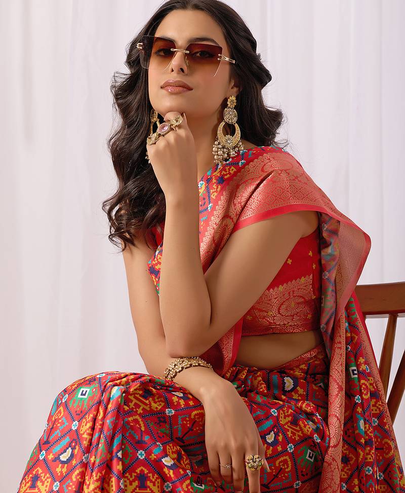 Red patola weaving lichi art silk saree with broad border | hand-woven traditional patola saree with matching blouse