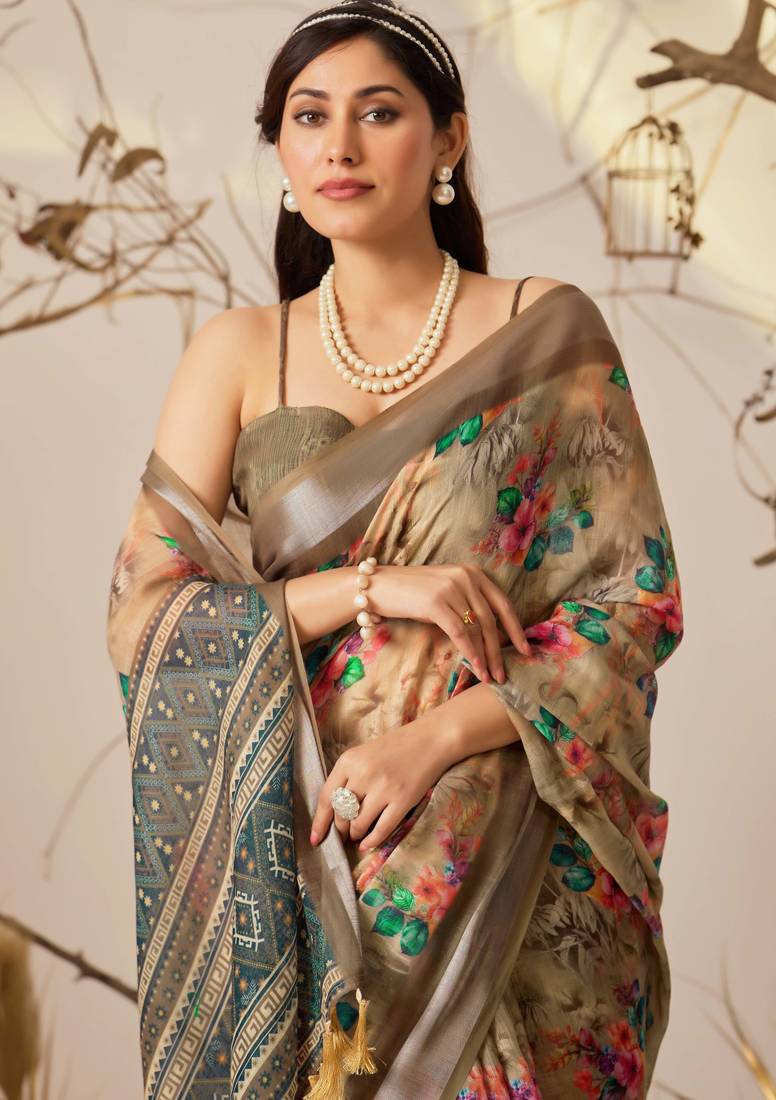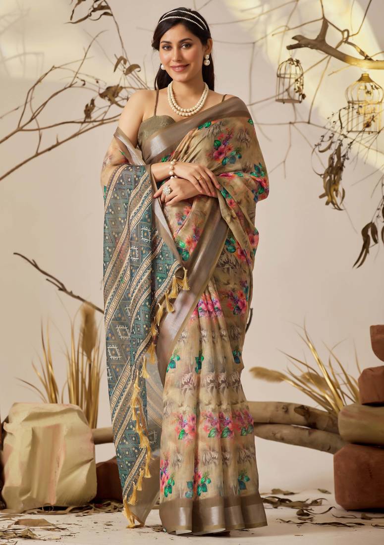 | Product Name | Soft Beige Linen Cotton Saree With Floral & Patola Print | Designer Contrast Border & Blouse | |