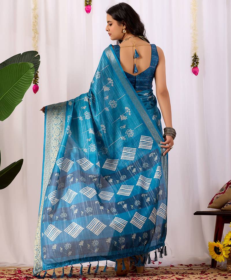 | Product Name | Turquoise Lichi Silk Zari Woven Saree With Rich Traditional Motifs & Designer Contrast Blouse | Festival & Wedding Wear | |