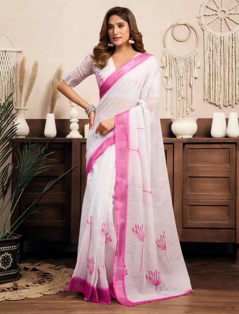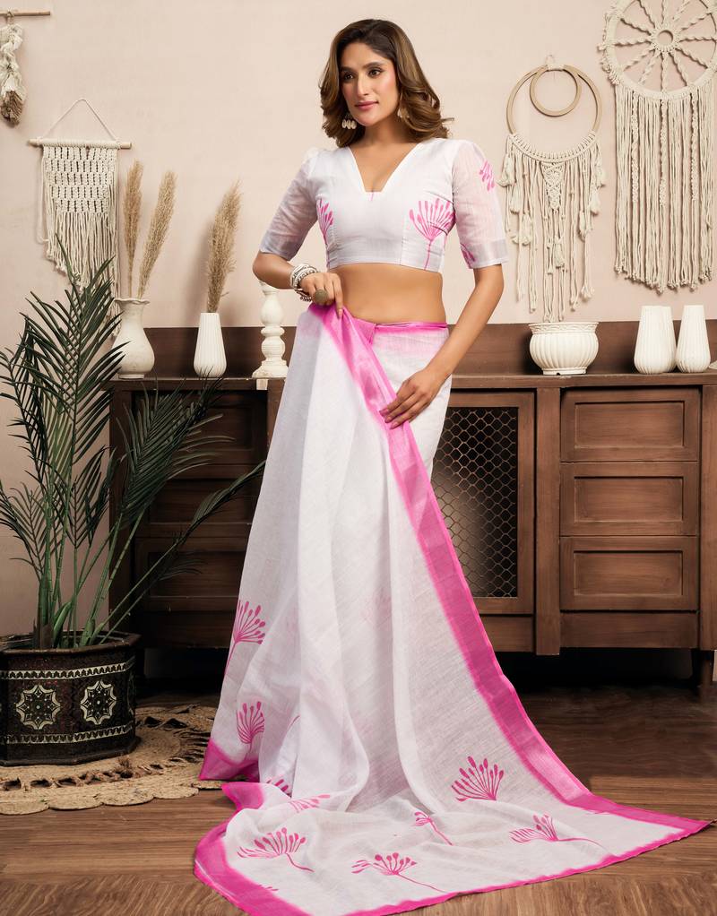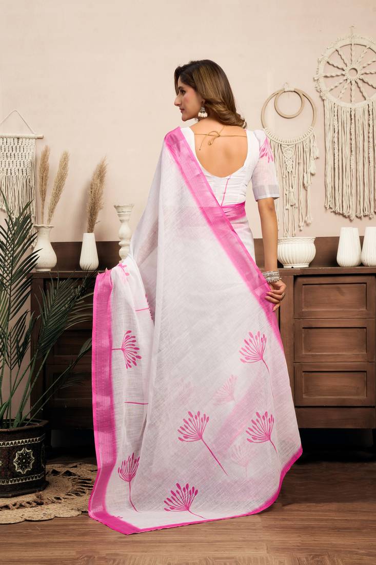 | Product Name | White Linen Ready To Wear Saree With Printed Work Floral Print One Minute Saree With Unstitched Blouse | |