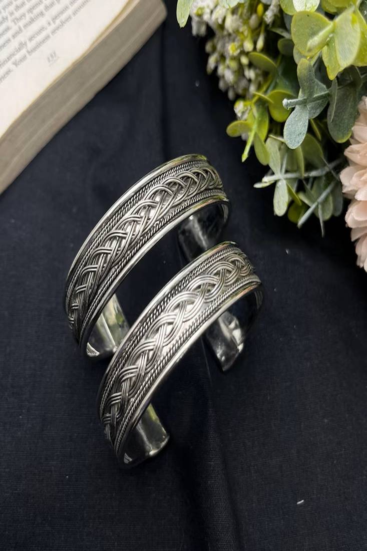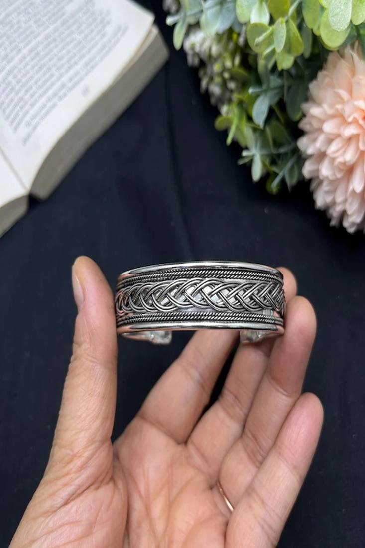 | Product Description | Add A Bold And Timeless Touch To Your Jewelry Collection With This Silver Tribal Cuff Bracelet Featuring An Intricate Celtic Knot Design. Inspired By Viking And Nordic Jewelry Styles, This Handcrafted Cuff Bangle Showcases Beautiful Braided Detailing With A Vintage Oxidized Finish, Making It A Perfect Statement Accessory For Boho, Tribal, And Ethnic Fashion Lovers.This Adjustable Open Cuff Bracelet Is Comfortable To Wear And Designed To Complement Both Casual Outfits And Special Occasions. The Braided Knot Pattern Symbolizes Strength, Unity, And Eternity, Making It A Meaningful Gift For Birthdays, Anniversaries, Festivals, Or Special Celebrations. |