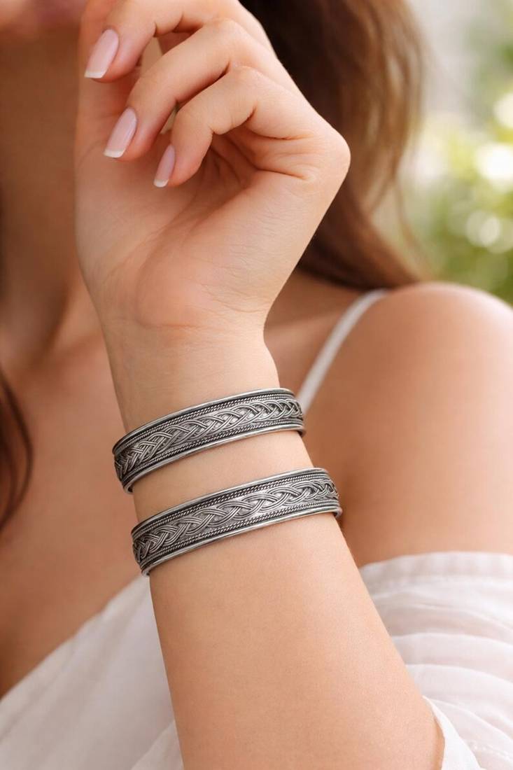 | Product Name | Celtic Knot Silver Cuff Bracelet Set, Viking Braided Cuff Bangle, Adjustable Tribal Bracelet For Women | |