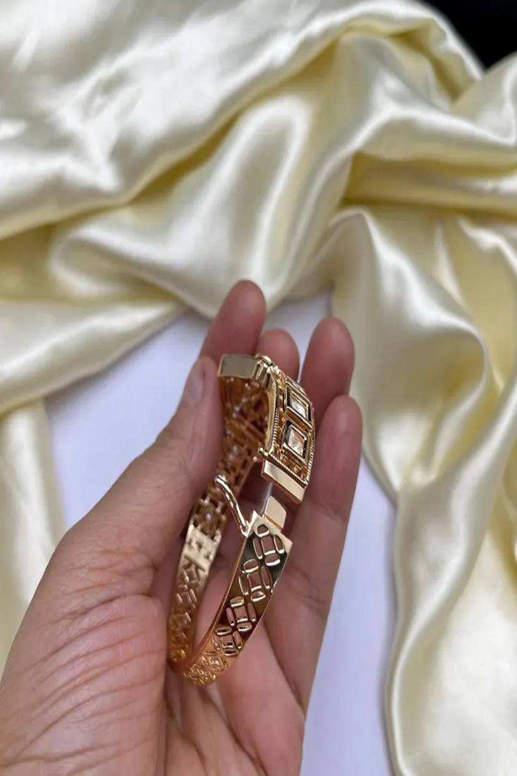 Gold plated kundan openable kada bracelet | indian bridal cuff bangle