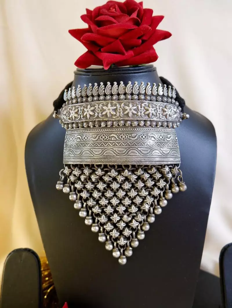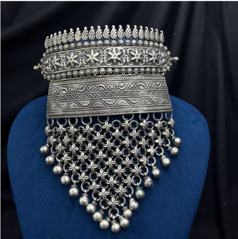 | Product Name | Handmade Brass Torque Choker Necklace Set | Vintage Silver Flower Jali Jewelry | |