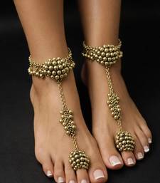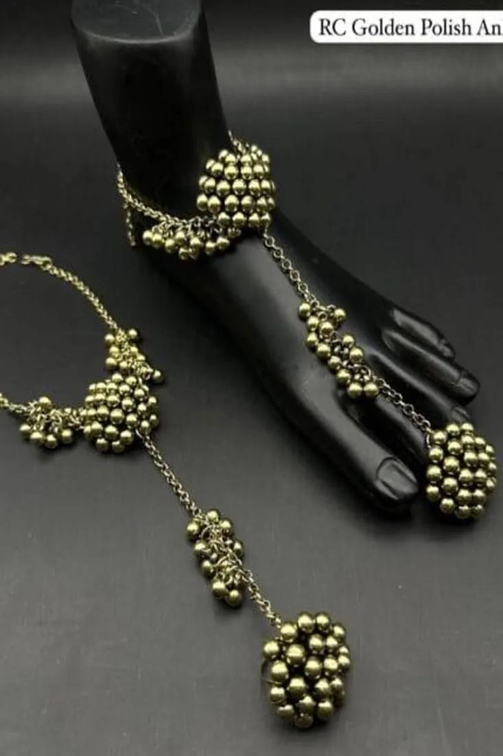 Make A Bold Style Statement With These Oxidized Gold Toned Barefoot Sandals, A Stunning Fusion Of Traditional Indian Panja Payal And Modern Bohemian Foot Jewelry. Designed With Intricate Ghungroo Bead Clusters, These Anklets Gracefully Connect To Matching Toe Rings, Creating An Elegant Barefoot Look That Instantly Elevates Any Outfit.