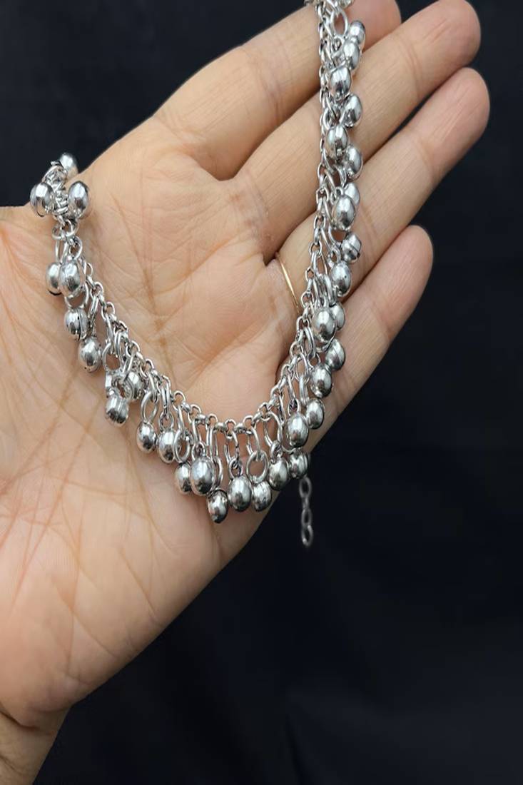 Add Timeless Charm To Your Look With This Beautiful Handcrafted Silver Payal Anklet. Designed With Delicate Ghungroo Bells And Intricate Detailing, This Anklet Reflects The Elegance Of Traditional Indian Jewelry While Perfectly Matching Modern Boho Fashion.This Ethnic Anklet For Women Is Ideal For Weddings, Festive Occasions, Or Everyday Styling. Its Lightweight Design Ensures Comfortable Wear While The Stunning Craftsmanship Makes It A Statement Piece For Your Feet.