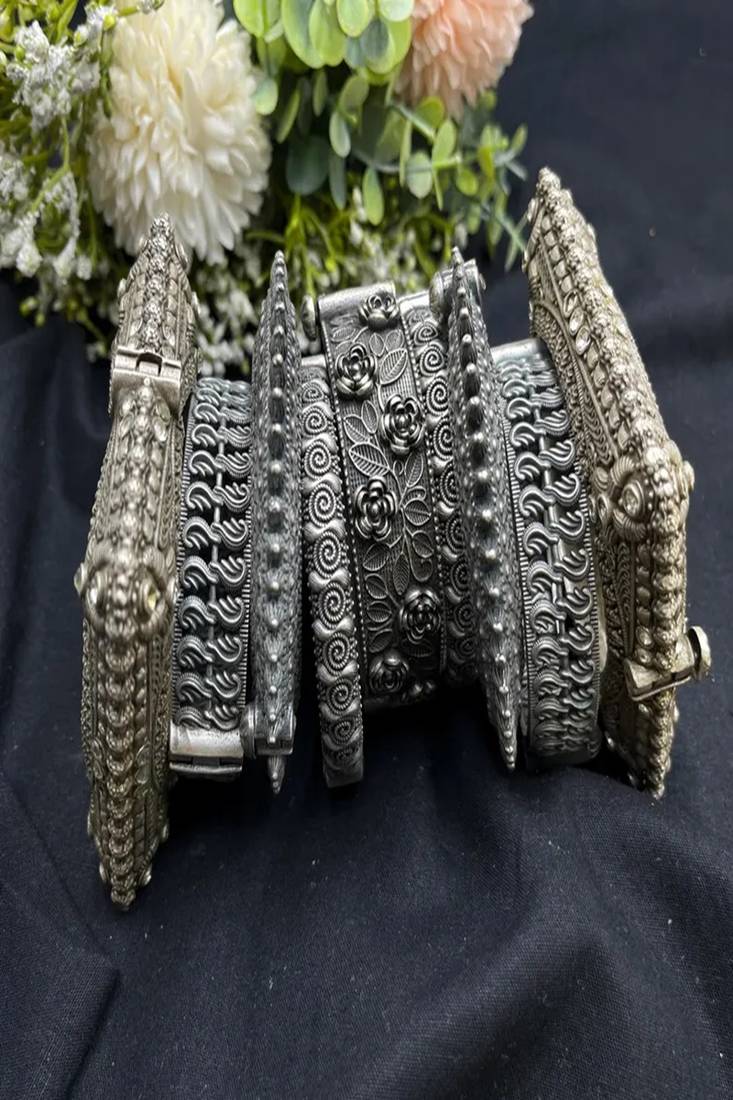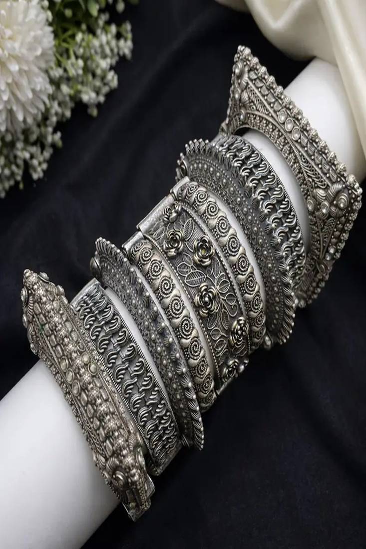 | Product Name | Vintage Oxidized Silver Kada Bangle Set Floral Square Rose Design Antique Openable Screw Hand Bracelet Set Of 9 Pc | |