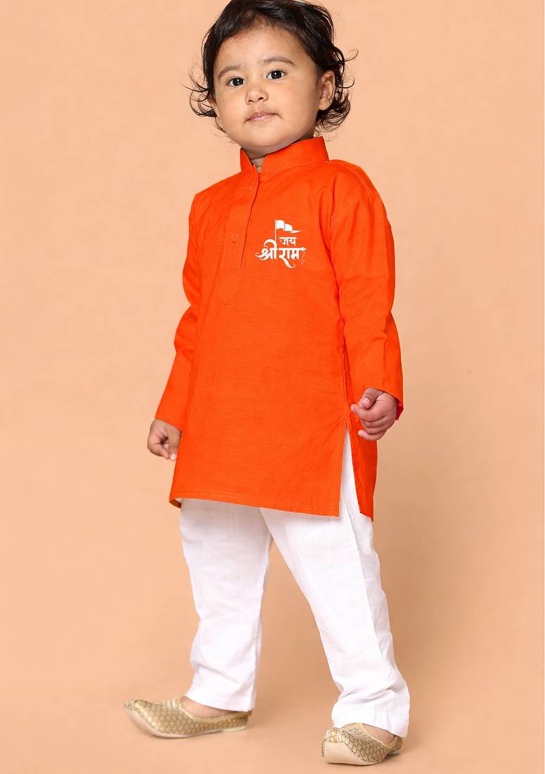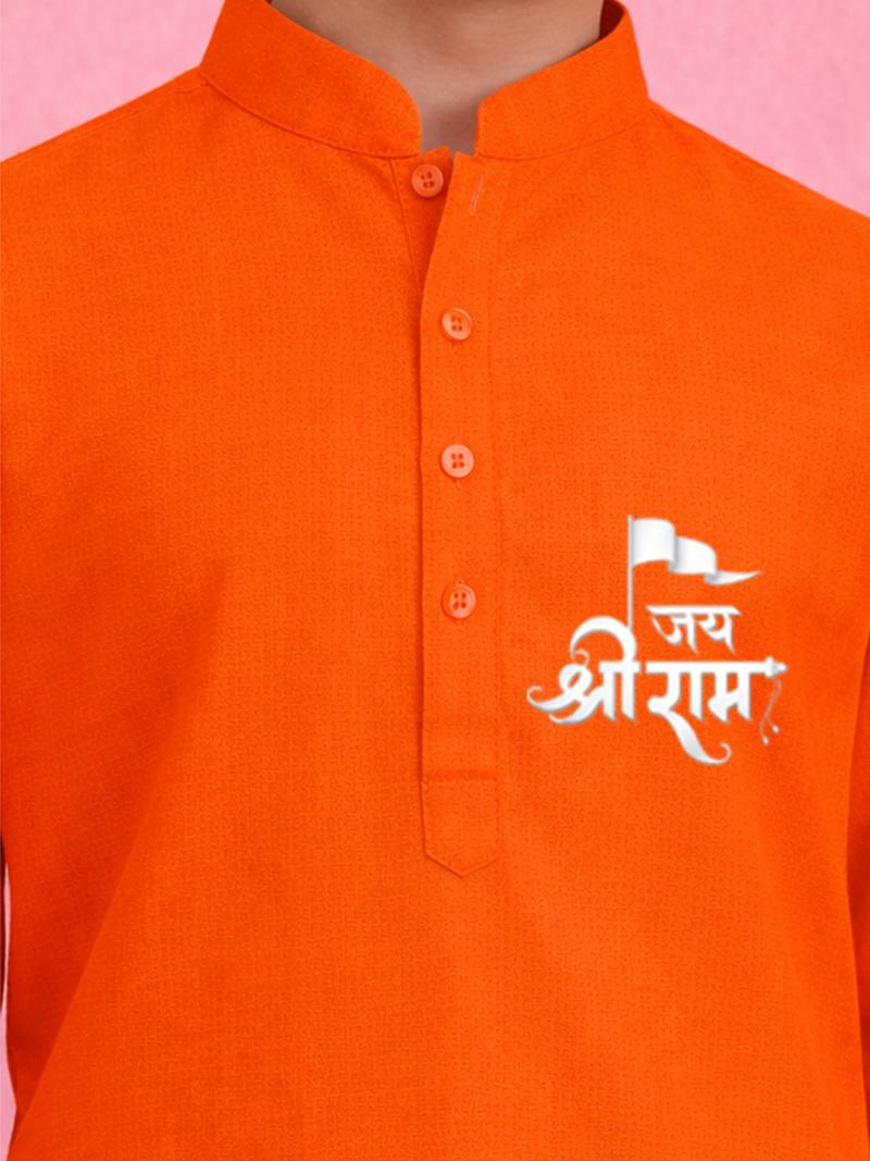 | Product Name | Boys Orange Cotton Kurta Pyjama Set With Jay Shree Ram Print | |
