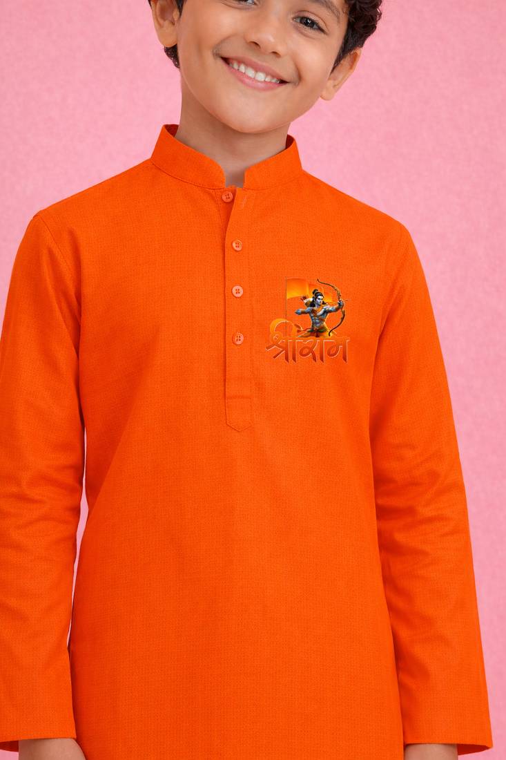 | Product Name | Boys Cotton Orange Kurta Pyjama Set With Shree Ram Print | |