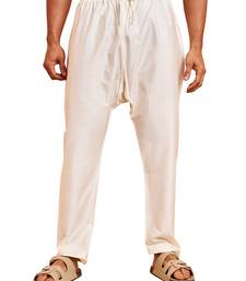 Men cream viscose pyjama - solid pattern drawstring elastic waist festive ethnic wear