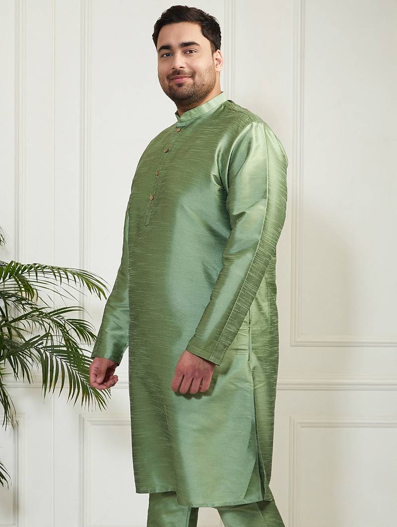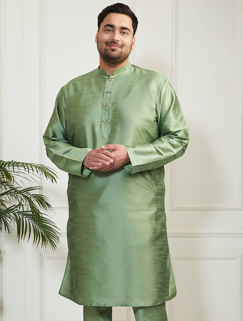 | Product Description | Silk Blend Plus Size Kurta For Men, Has Madarin Collar, Button Closure, Full Sleeves, And Straight Hem. |