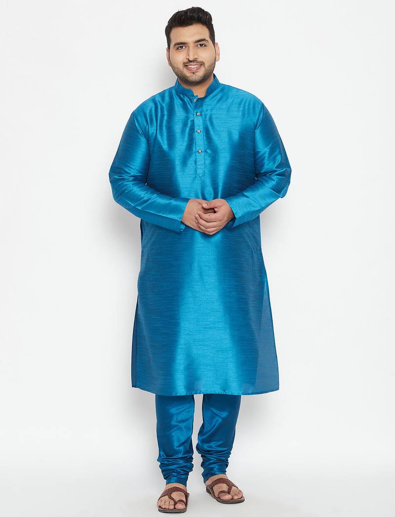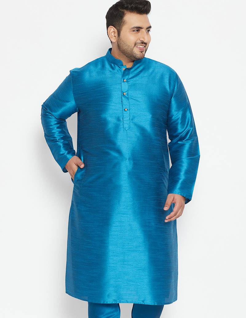 | Product Description | Silk Blend Plus Size Kurta For Men, Has Madarin Collar, Button Closure, Full Sleeves, And Straight Hem. |