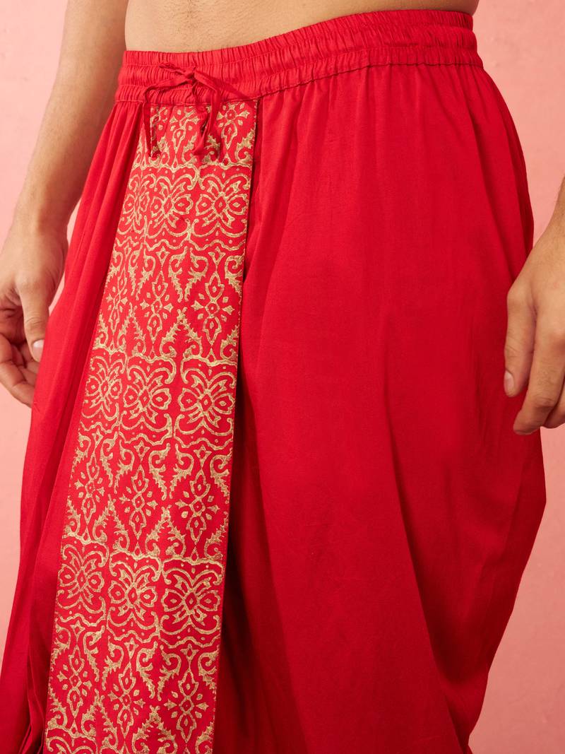 Product Name | Mens Red Viscose Dhoti Traditional Border Print Navratri Ethnic Wear | |