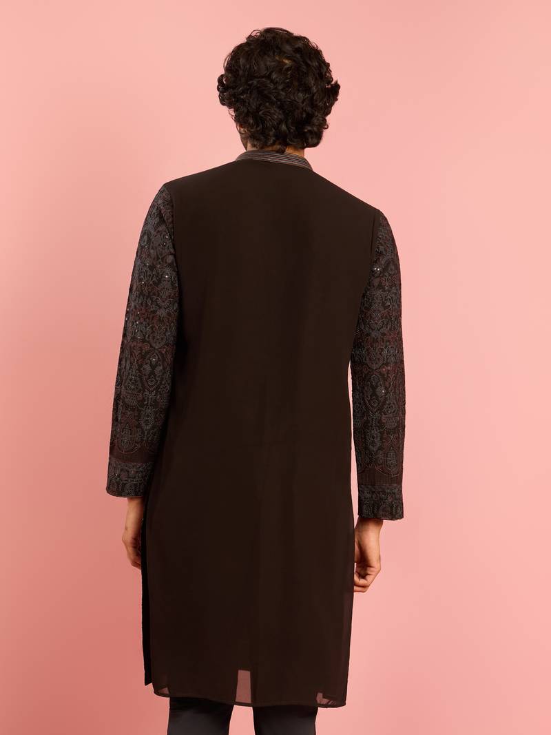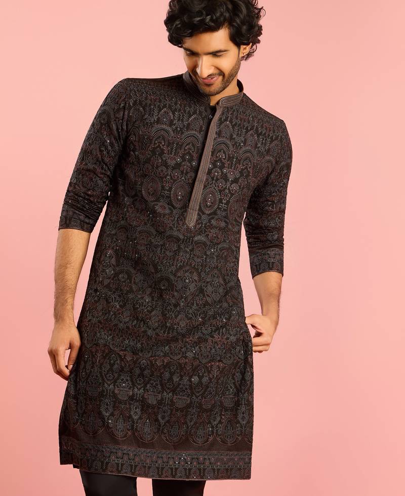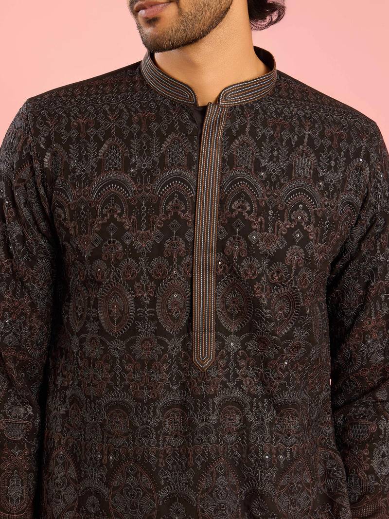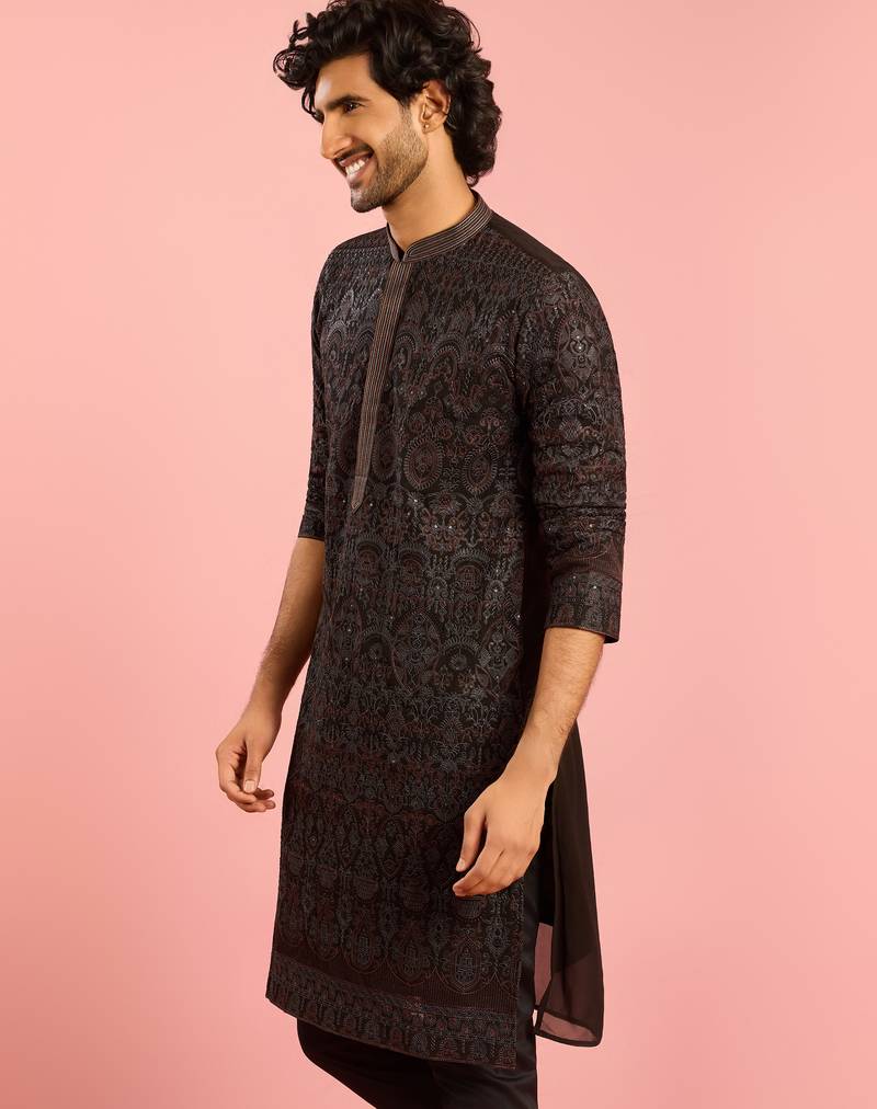 Black kashmiri embroidered georgette kurta | wedding eid festive wear
