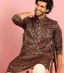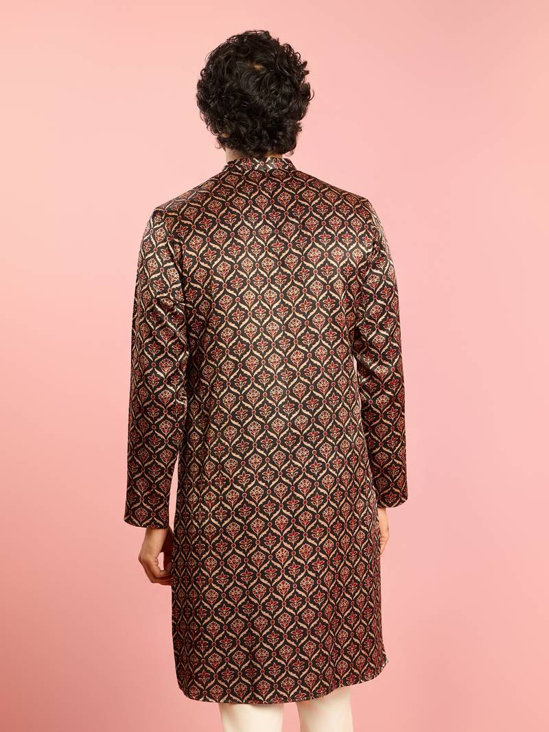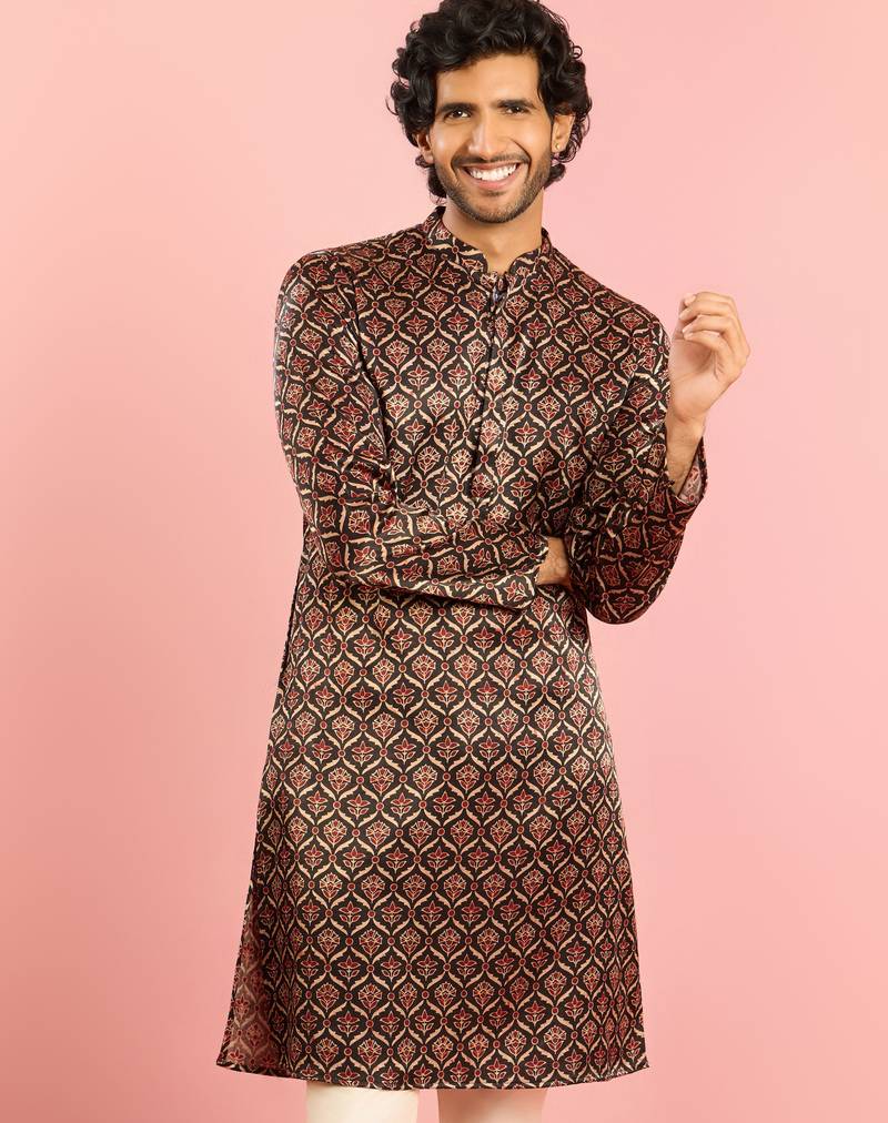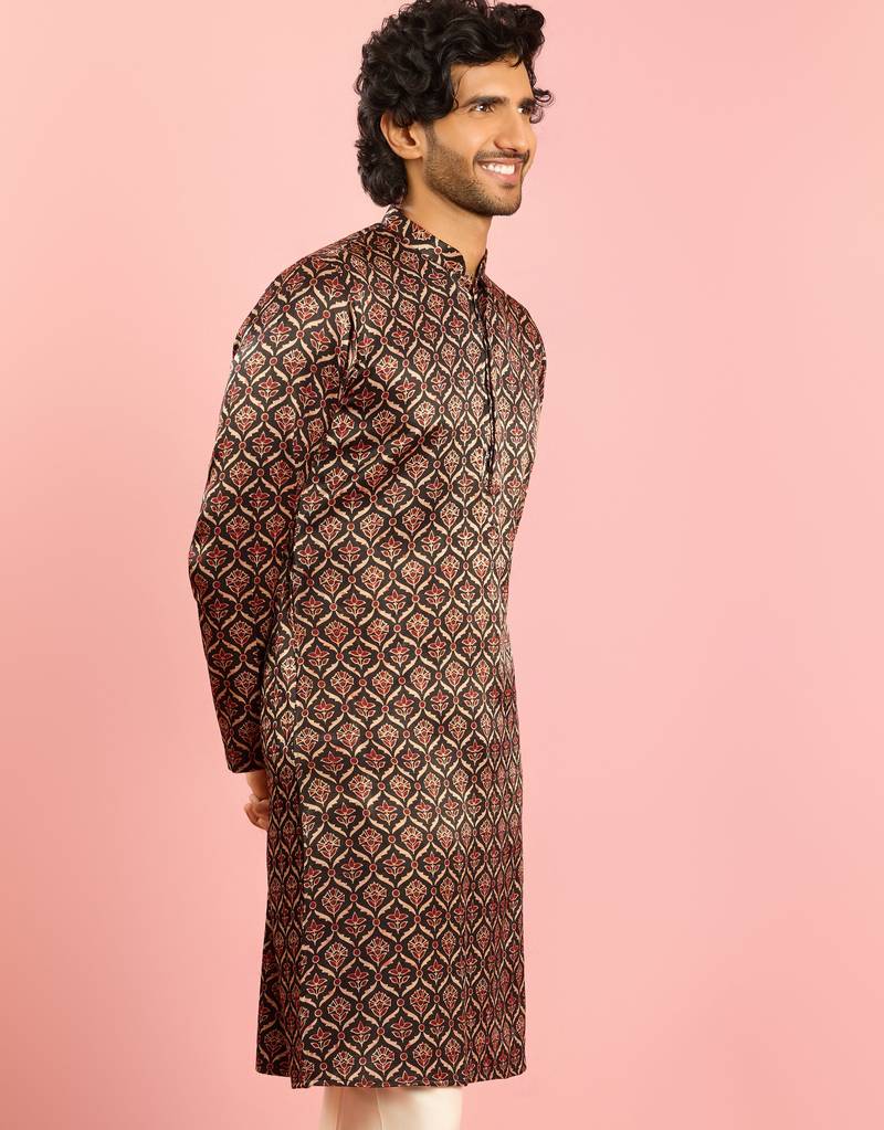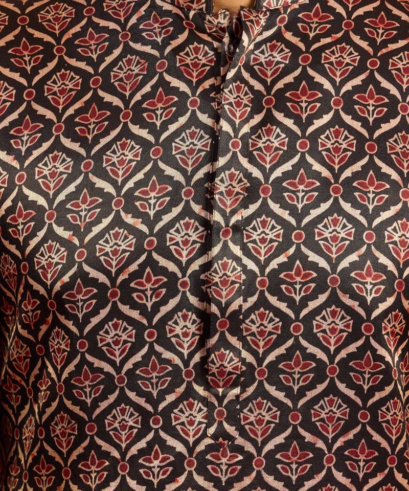 Product Name Black Silk Blend Kurta | Traditional Ajrakh Digital Print All Over Design