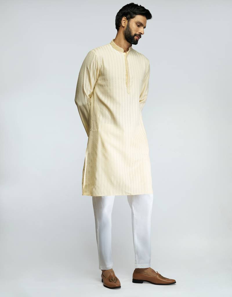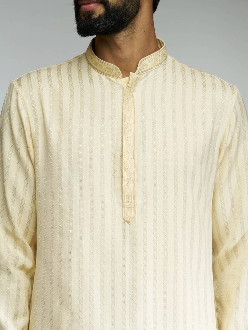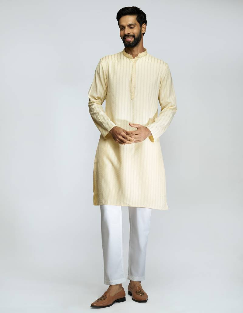 | Product Name | Cotton Blend Jacquard Thread Embroidered Long Kurta With White Poplin Cotton Pyjama Set | |