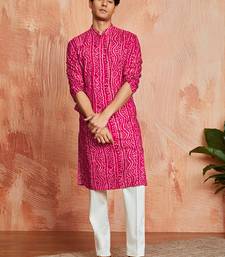 Falsa foil bandhani digital print rayon kurta with cream viscose pyjama | vibrant festive wear