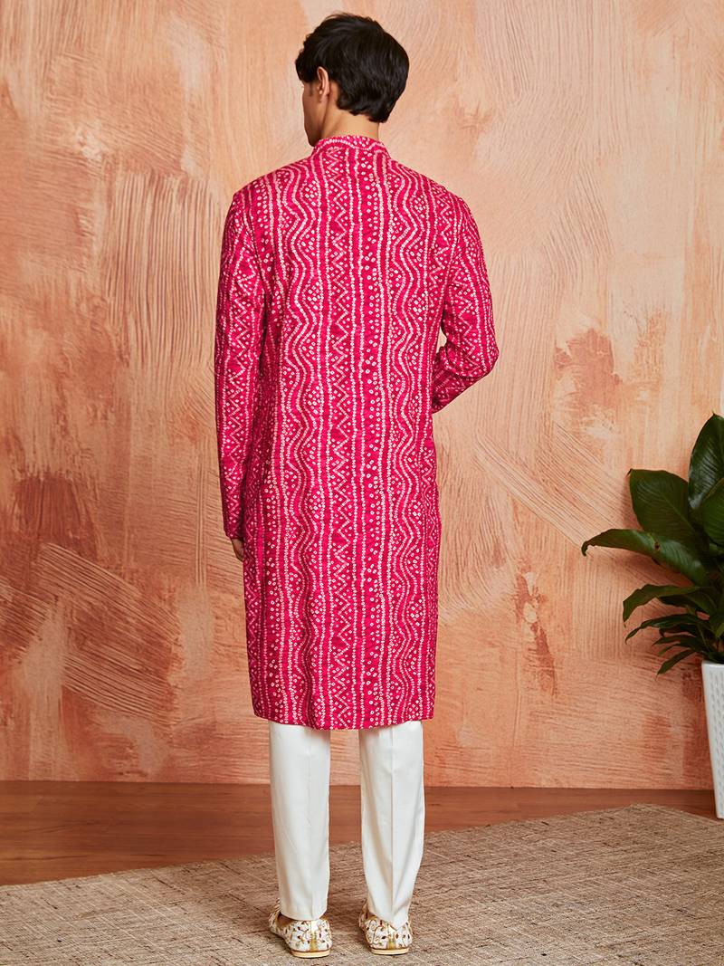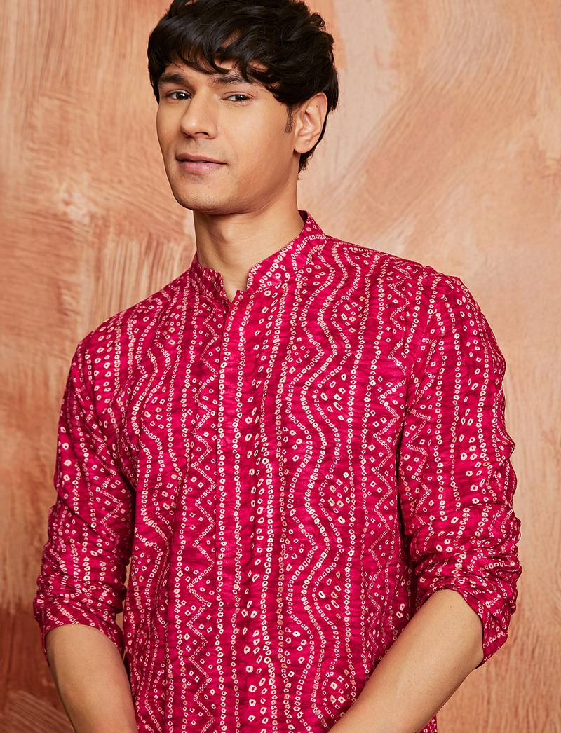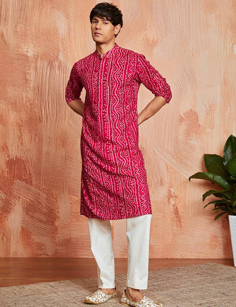 red foil bandhani digital print rayon kurta with cream viscose pyjama | bold festive ethnic wear