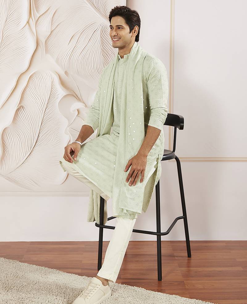 Pista green silk blend embroidered dupatta | festive & wedding wear with sequin work