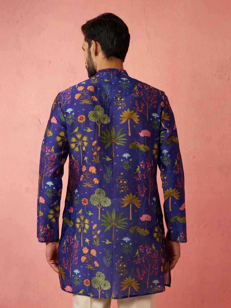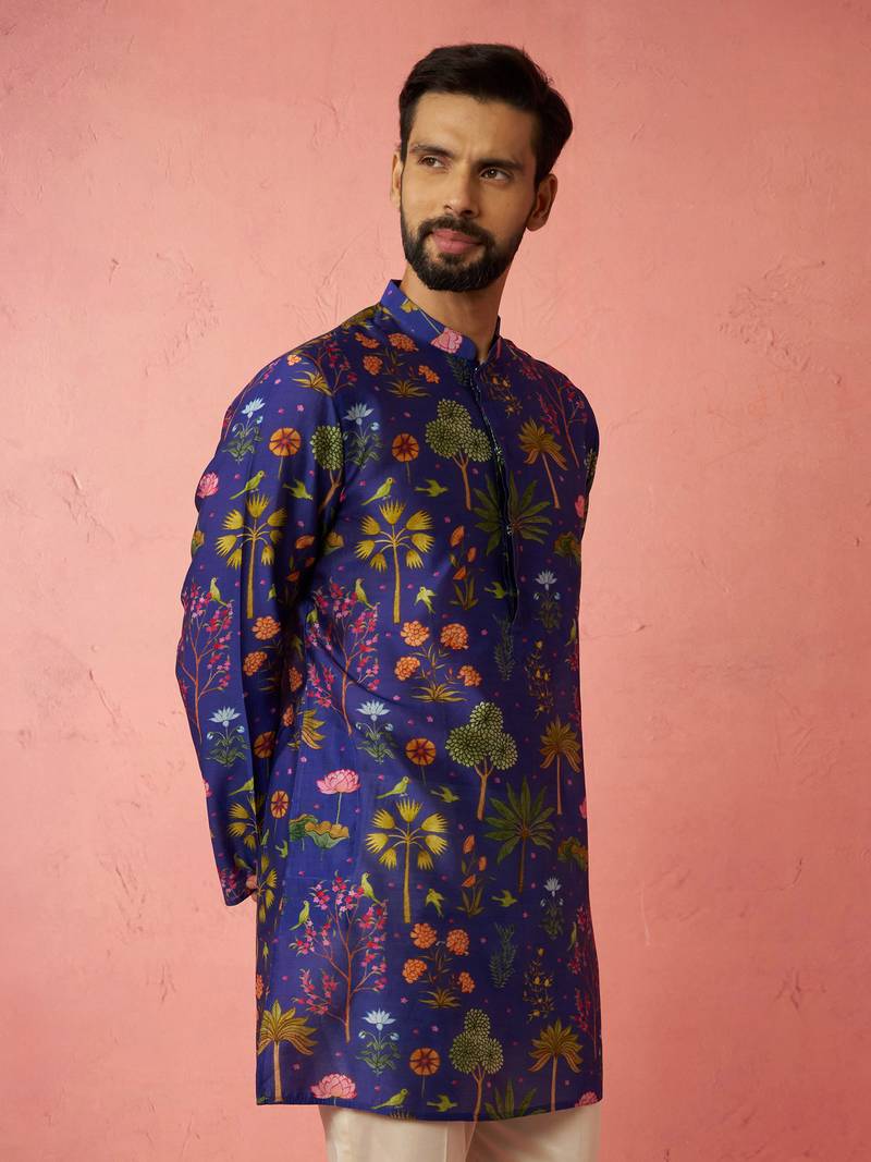 Blue digital print kurta - floral tropical design ethnic wear