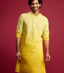 | Product Name | Vastramay Men Yellow Ombre Cotton Blend Kurta | All Over Mirror Work & Digital Print | Knee Length Straight | |
