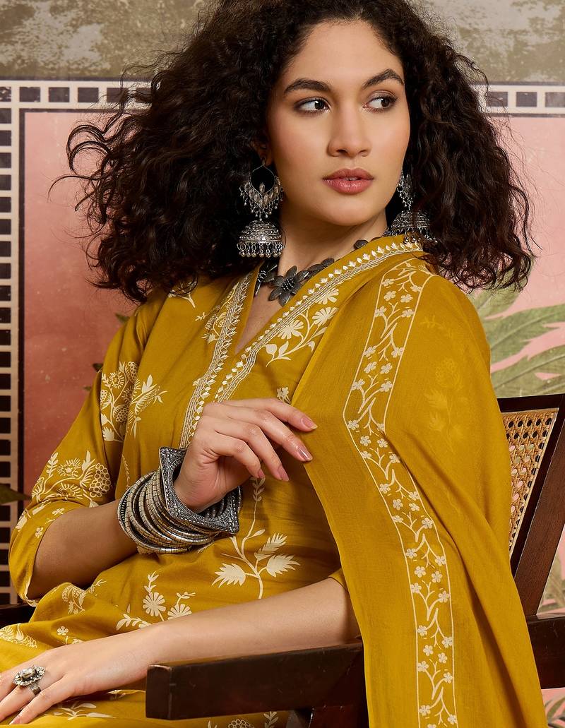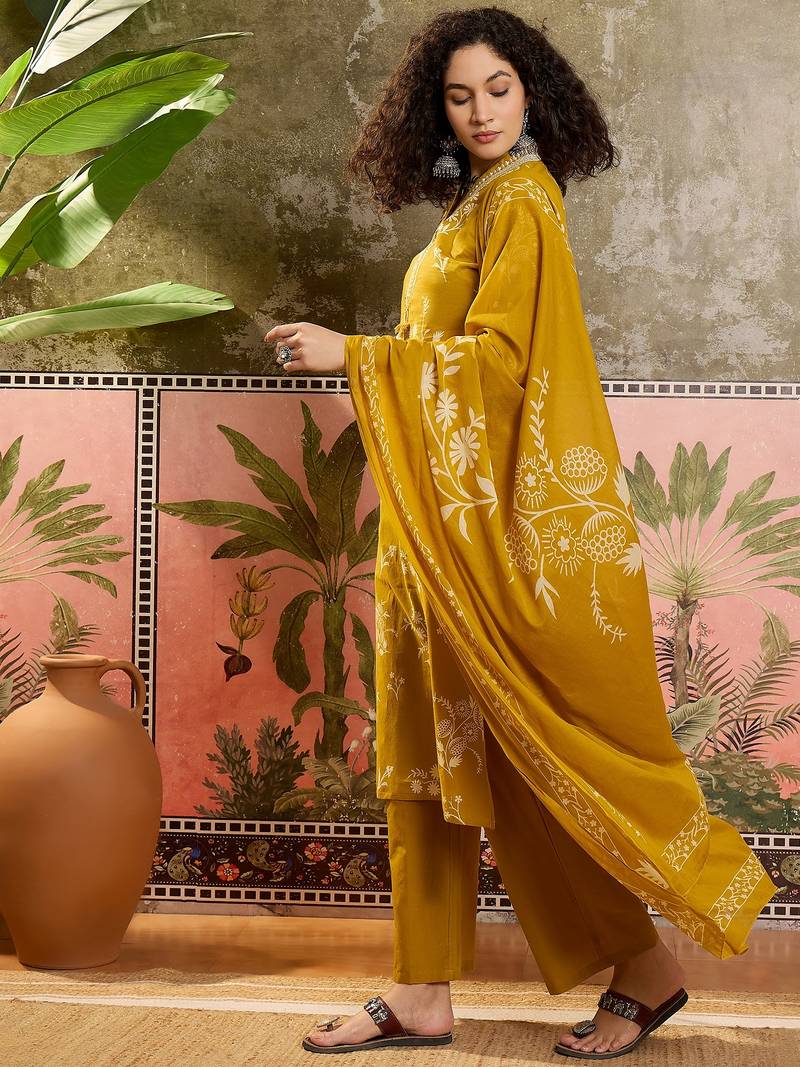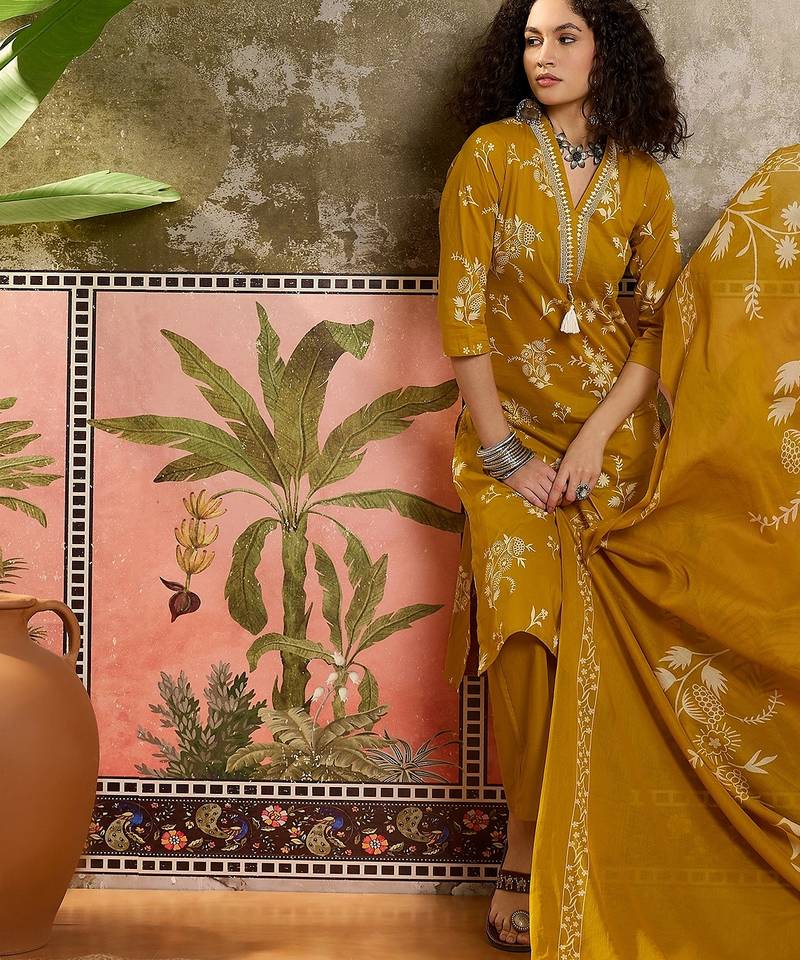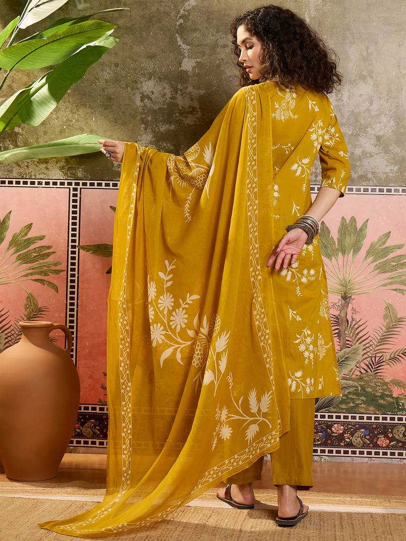 | Product Name | Mustard Printed Kurta With Trousers & Dupatta Set | |